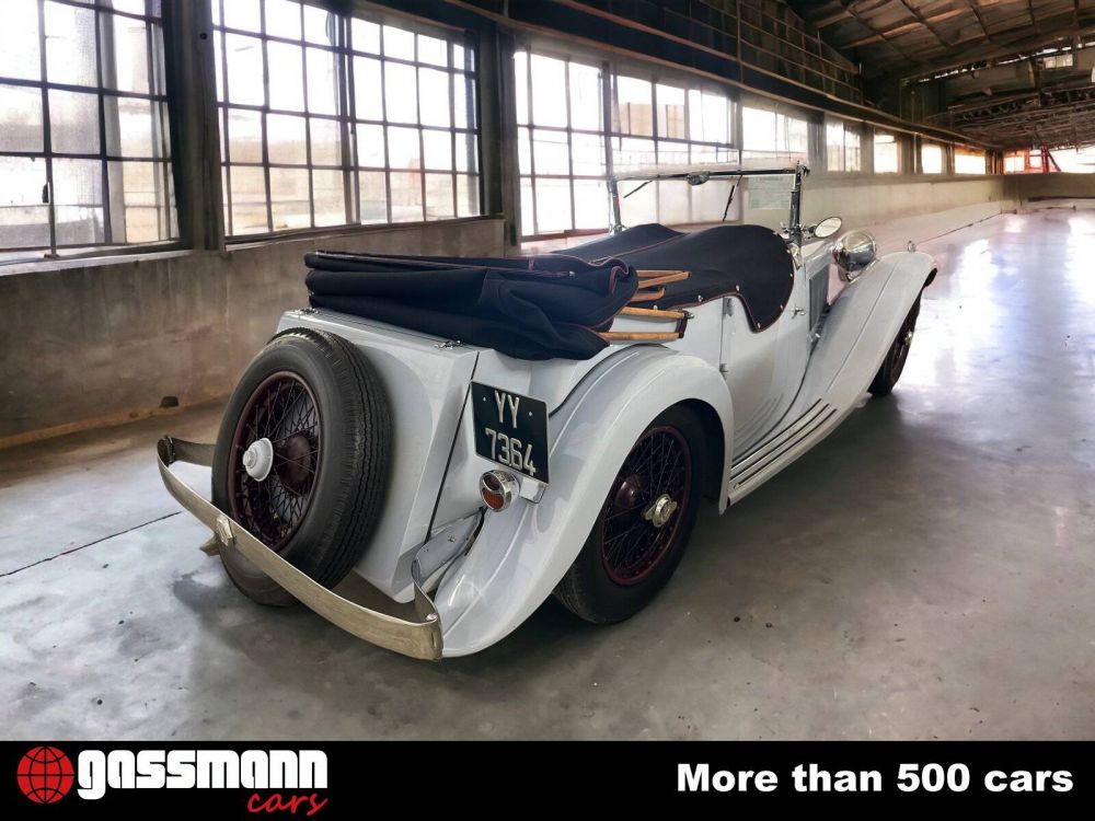 Previously a model name, 'Jaguar' replaced 'SS' as the marque name for obvious reasons in 1945. William Lyons had founded the Swallow Sidecar Company in Blackpool in 1922, branching out into coachbuilding with a Swallow-bodied Austin Seven in 1926. Re-location to Coventry followed and the Swallow range expanded to include models on Morris Cowley, Wolseley Hornet and Standard Sixteen chassis. Marque status arrived in October 1931 with the launch of the SS1, a close-coupled coupé. The SS1's Lyons-designed chassis was built by Standard, who also supplied the six-cylinder sidevalve engine and four-speed gearbox. The stylish SS1 went some way towards establishing the pattern for future Jaguars, combining as it did sporting good looks with a better-than-average specification and all at a bargain price. 502 SS1s were completed, of which fewer than 20 are known to survive, most of these, like the example offered here, have been converted to tourer coachwork.