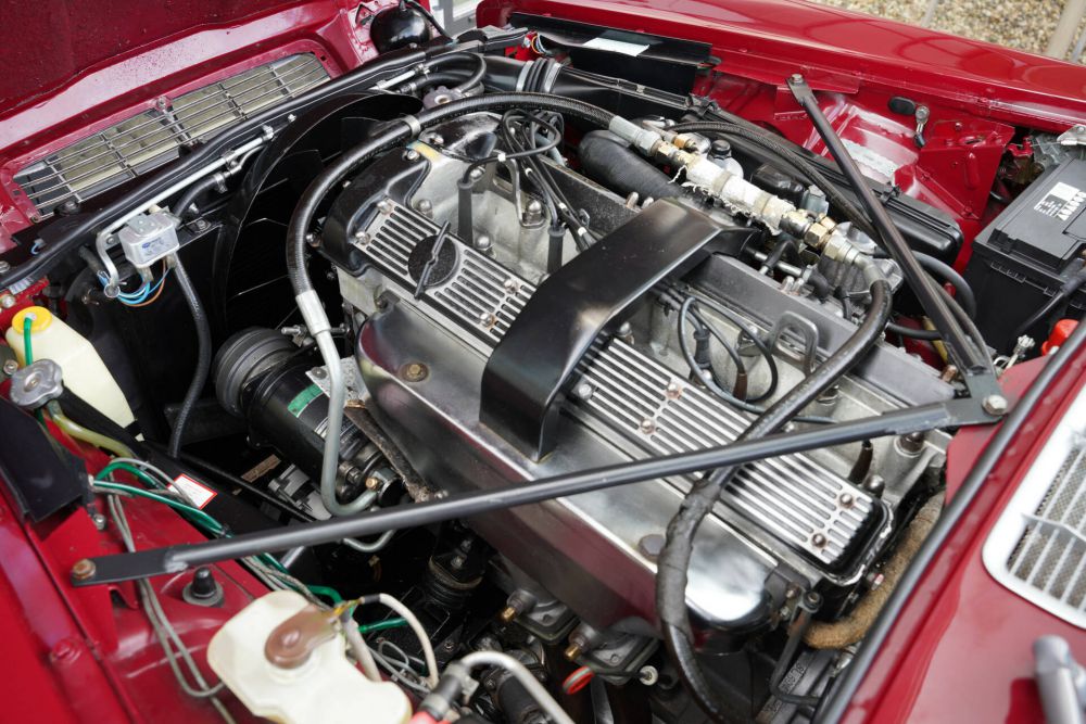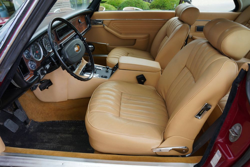 Inside, we find beautiful beige leather upholstery that fits perfectly with the red paint. The interior has been completely reupholstered and is in very fine condition. The beige leather is of excellent quality, looking like original upholstery in very good condition, and the carpets are in fine condition. The entire interior is correct. Under the hood, we find the delightful 4.2-liter engine. The engine runs beautifully and sounds pure. The manual gearbox with overdrive functions flawlessly and takes you to another era where cars had a strong identity. You are surrounded by the elegance and comfort that only a Jaguar can offer. The driving experience is fantastic, and the entire chassis, along with the precise steering, makes you feel like you have just picked up the Jaguar from the dealer in 1977.