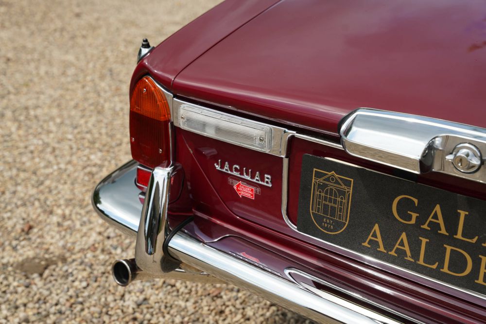 Our Jaguar XJ6 is equipped with a manual gearbox with overdrive, contributing to a dynamic driving experience. The car has been beautifully restored and overhauled with a focus on maintaining authenticity, preserving the car's authentic details, which we love to see and which give the car its beloved appearance. This example is finished in a stunning red body color called Regency Red, which beautifully complements the lines of the Jaguar. It contrasts magnificently with the beige interior, which exudes class. The chrome work, such as bumpers, grille, and various accessories, enhances the elegance of this Jaguar. The various parts are in good condition, and the underside of the car looks just as neat.