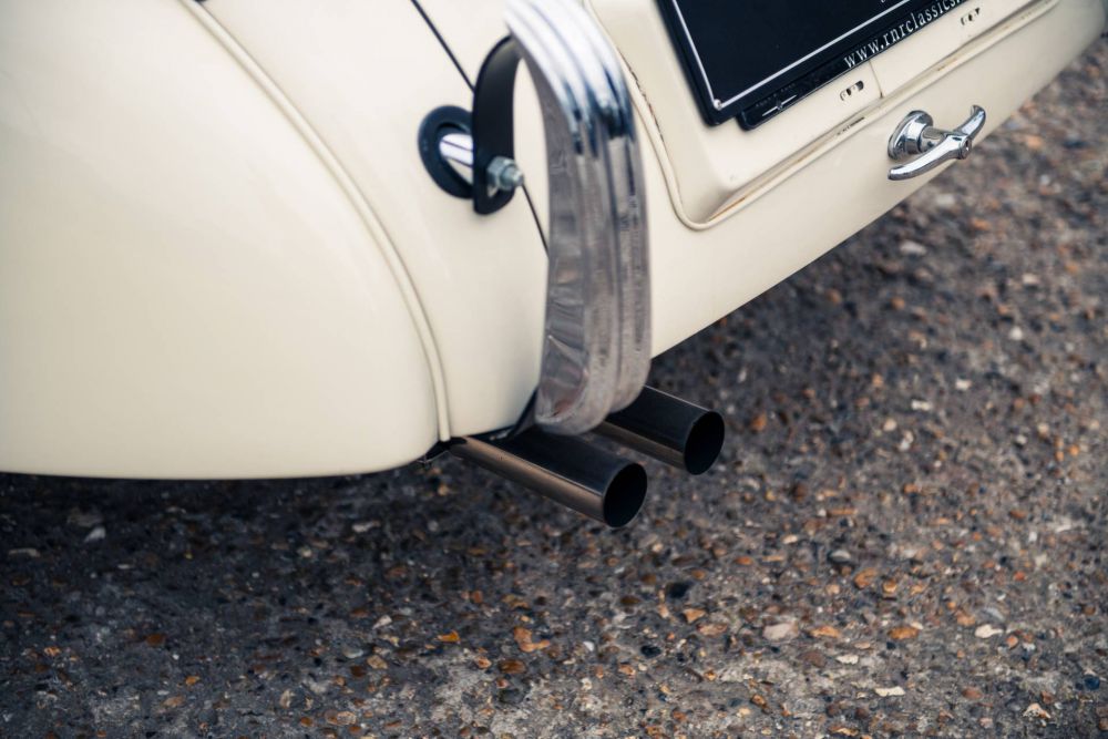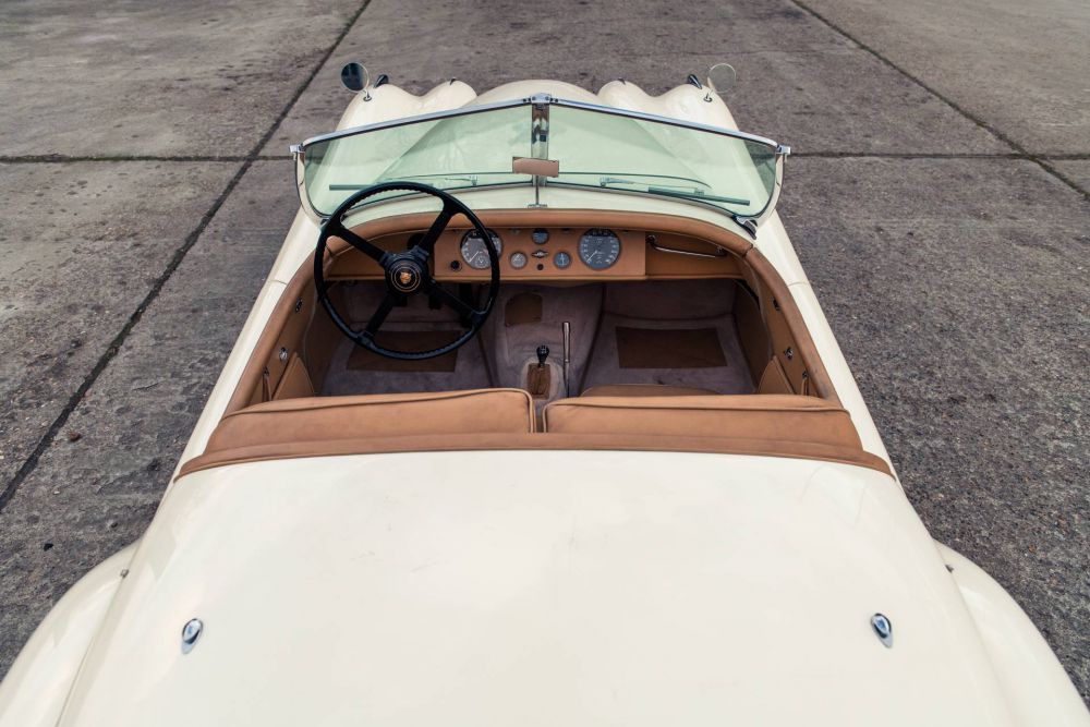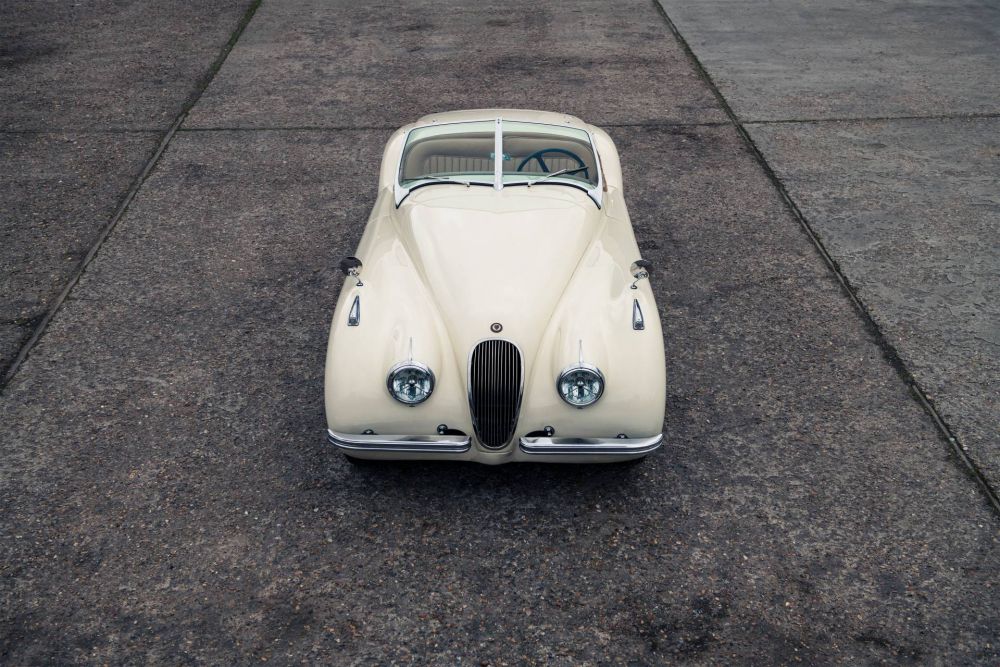 Offered here you see a stylish, yet sporty '50 Jaguar XK120 OTS roadster. This car wears the beautiful colour combination ‘Cream’ white body with ‘Biscuit’ brown leather interior and a ‘Sand’ brown soft top. What makes this XK120 very elegant are the nowadays hard to find full ‘disc wheels’, that partially disappear behind the ‘spats’ (closed wheel arches) at the rear of this magnificent vehicle. Together with the split window, this creates a striking appearance, a true style icon! But appearances are deceptive, even though this Jaguar looks like it has won several beauty competitions, the sporty aspect is certainly not lacking here. This XK120 from 1950 is one of the earliest steel-bodied XKs which makes it very interesting for the RT riders among us. It goes without saying that this early copy is eligible for both the Mille Miglia and all other major events worldwide.