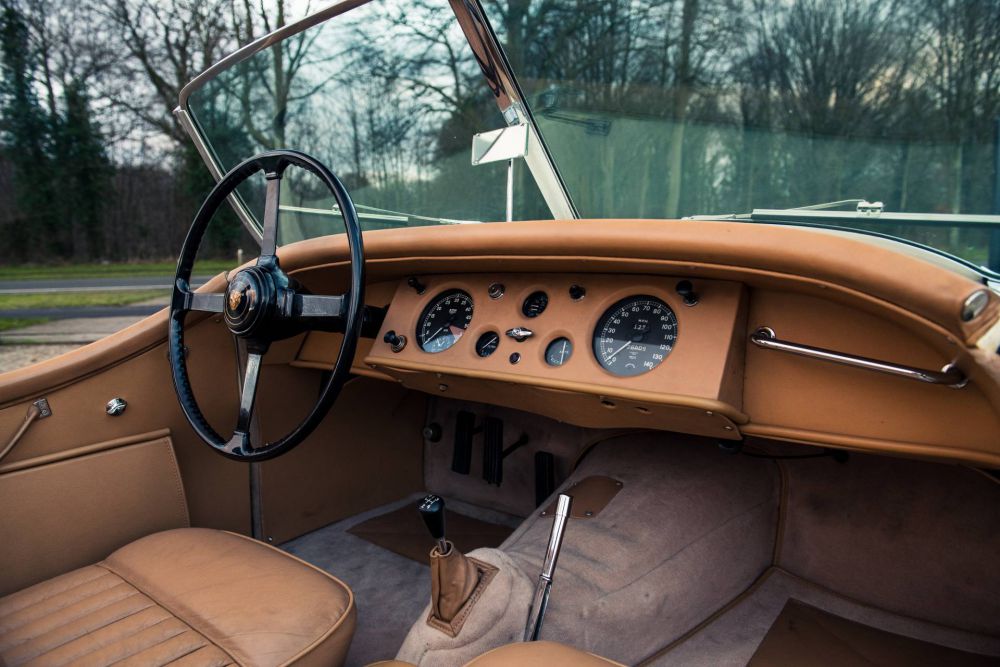 This Jaguar underwent an older quality restoration, which means that the car is not only in excellent technical condition today, but also has a beautiful patina. Under the hood is the well known, very well-running and sounding XK engine, with original SU carburettors. The original and buttery smooth Moss gearbox is, of course, also included. This car is in excellent condition, both top and bottom, inside and out, and the original brake drums all around are assisted by the upgraded suspension with adjustable gas dampers.