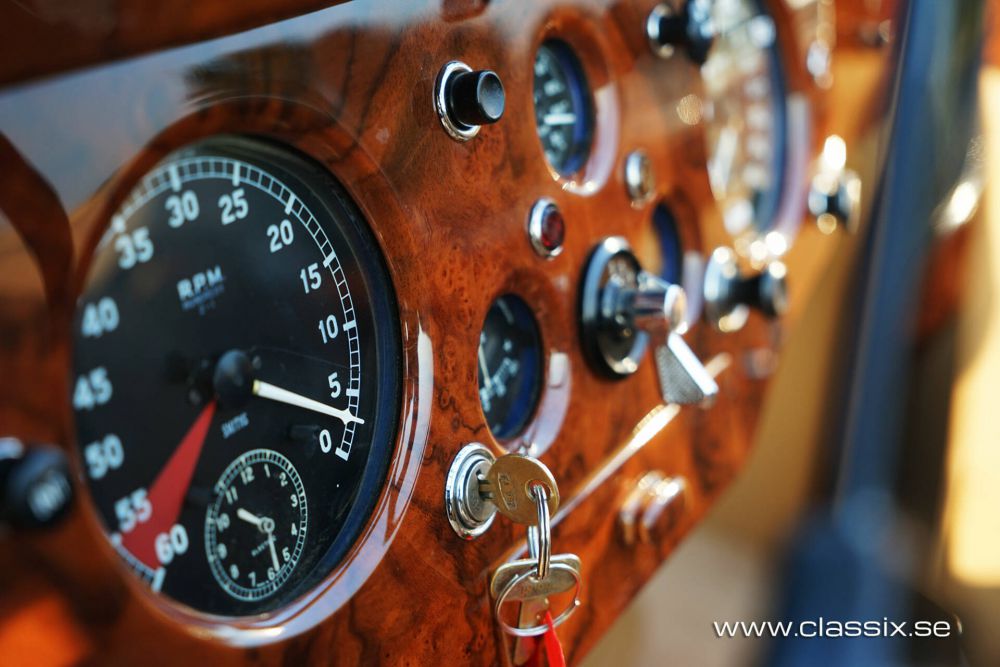 Mechanical: Powered by a robust 3.4-liter straight-six engine, this Jaguar XK140 performs exceptionally well. The car's four-speed manual gearbox, coupled with overdrive, allows the car to cruise comfortably and relaxed at 110 km/h. Recent mechanical updates include a new wiring harness to ensure the electrical systems function flawlessly. The large drum brakes are in excellent working order, and the fuel tank has been replaced with a lightweight aluminum version, preventing future corrosion issues.