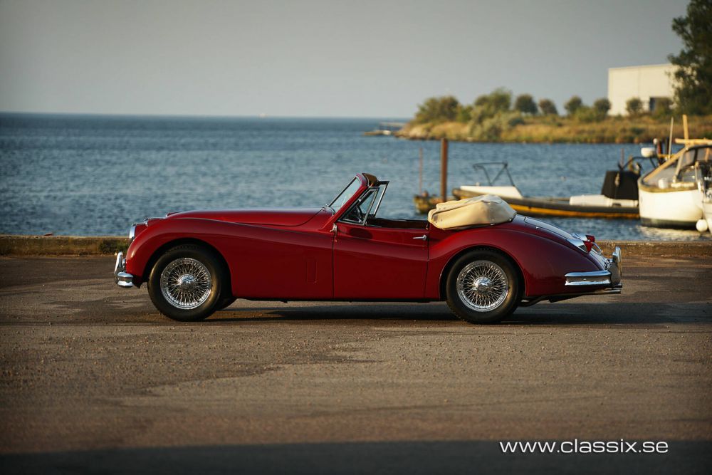 History: Originally dispatched from Jaguar on October 27, 1955, this XK140 was sold to Mr. Scott Peterson in Los Angeles, California. The car later returned to the Netherlands, where it underwent a comprehensive restoration by the renowned Houtkamp Collection, completed around 2019. It was registered in Sweden for the first time in 2020 and has had one owner since. The vehicle comes with its original jack, spare tire, and a detailed history file, including a Jaguar Heritage Certificate confirming its matching numbers status.
