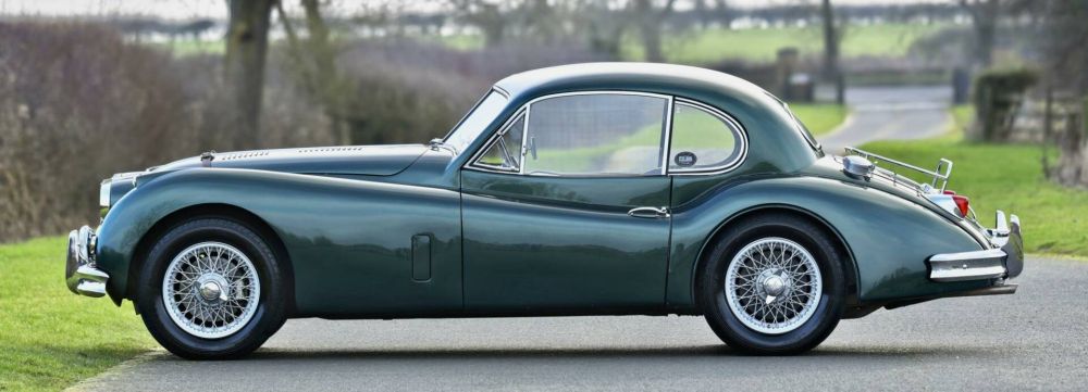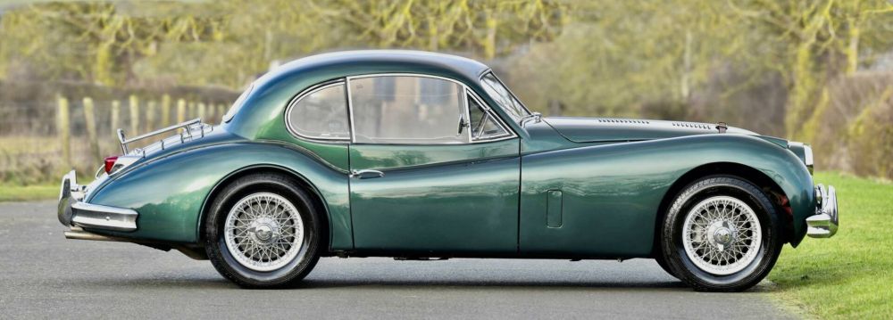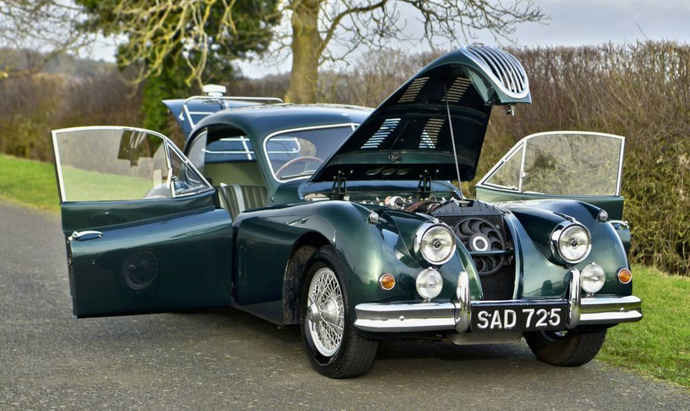 1956 Jaguar XK1450 FHC RHD Chassis Number: 804731 Registration Number: SAD725 Jaguar XK140 1956 FHC. Haggerty agreed value is £95,000. This car has undergone a full bare chassis/body off restoration and has had a significant number of important upgrades undertaken. These include front disc brakes, 5 speed gearbox, and a complete engine rebuild by Guy Broad up to full C-type spec with 9:1 pistons, since when it has done less than 1,000 miles and is immaculate. All this fully documented with bills & pictures. Needless to say the car is now transformed being both more driveable, far faster & able to stop as well as it goes. A kenlowe fan has been installed up front to take care of cooling in hot summer conditions. There is a massive history and invoice file with the car as well as a full photographic record of the chassis restoration. The car is finished in a tasteful shade of metallic green with the paint in good order. To the interior is lovely pale green leather to the sports bucket style seats along with high quality matching carpets. All woodwork has been removed & refinished & is of spectacularly figured burr walnut giving an opulent feel to the interior accomodations. A mota-Lita Steering wheel completes the ensemble. To the rear is a useful luggage rack giving ample touring capacity. The car sits on 4 painted wire wheels with knock off hubs & new tyres all round. This car is well enough sorted to have contested the VSCC, Pomeroy Trophy, Silverstone, 16th February 2019 which speaks volumes to how the car is set up. Ideal for extensive touring & fast road use, the car will be equally at home on the track. This is a properly aset up car needing nothing doing to it at all.