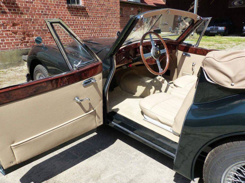 After the introduction of the new Jaguar Mark V Limousins, the sensation was presented at the end of 1948: The Jaguar XK 120. The figure 120 signalled the top speed of 120 miles or 193 km/h. And that in 1948! The further development is the Jaguar XK 140, which means even more power, more space in the interior and not quite as puristic as its predecessor. The SE (Special Equipment) version had even more power. Our Jaguar XK 140 SE Convertible corresponds to this version. Delivered in New York, the sports car was first registered in Florida and later in Minneapolis. Via Rotterdam, the classic car came to Munich/Germany in 2007. Here, a total restoration was carried out, documented by pictures and invoices. A Getrag gearbox and front disc brakes were installed. Since then it has been in one hand and only run a few kilometres. This Jaguar XK 140 SE Convertible has been restored without regard to cost. Check the quality.