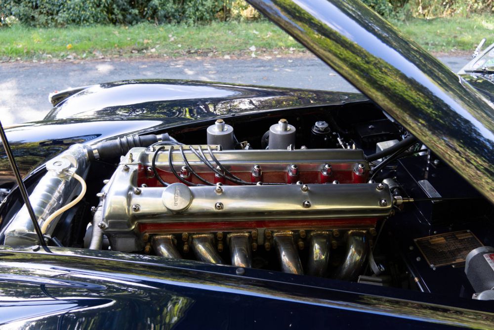 Since the very impressive rebuild the XK140 has covered most of its 7500 miles on long distance touring events and trips. The car is truly exceptional and of the very highest of standards. The bodywork, paintwork and chrome are beautiful, the chassis looks new, the upholstery wonderfully finished, the hood is perfect and the engine bay is quite simply exquisite. Panel gaps are top class, panels are perfectly straight, the bodywork is exactly as expected having had a rebuild at this level of cost. Mechanically this is a highly upgraded car and it is very special to drive. On the road this has to be the very best XK140 we've offered to the market, every aspect of the driving experience top class. The car is mechanically sensational, and the invoice file clearly demonstrates this has been maintained to the highest of standards.