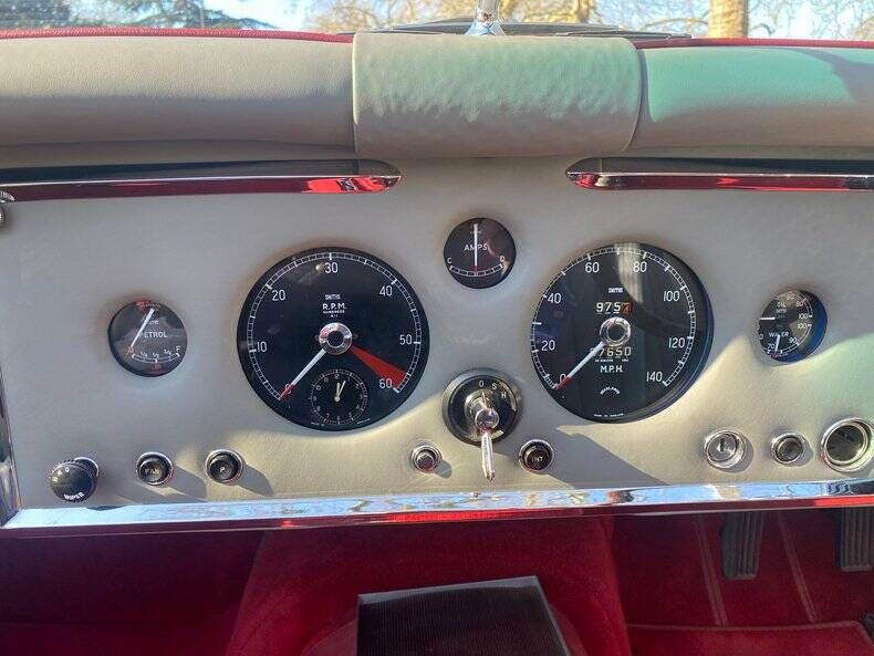 To top off this creamy example she drives magnificently from the silky smooth & powerful engine, to the ever-so perfect for touring Laycock manually operated overdrive (second gear lever in front of the normal Moss box stick) and in between the poly bushed suspension, with non adjustable shock absorbers