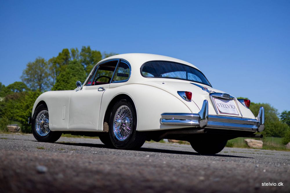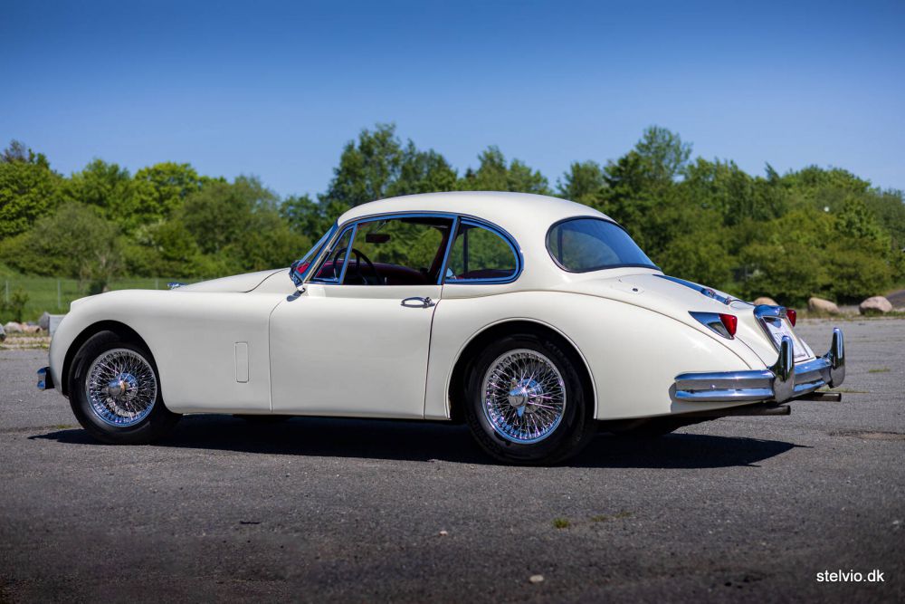 The XK150 was presented in 1957 as a further development of the XK120 and XK140. Originally, the numbers referred to the top speed of the car (120 mph = 190 km/h). The XK150 was the last incarnation of Jaguar’s famous “XK” series before the E-Type was presented in 1961. The immensely beautiful XK 150 was in production for only 4 years from 1957 to 1961. The chassis was essentially taken over from the previous models, and although it is not easily visible, some bodywork panels are actually also from the earlier cars. The wider body gave better elbow room for the passengers compared to the quite cramped cockpits in the 120 and 140 models. The XK 150 got disc brakes all around and from the outside, an XK 150 is easily recognizable by the curved windscreen and the higher hip line. William Lyon’s famous XK engine remained largely unchanged and was also carried over from the earlier XK models, but from late 1959 came the increased 3.8 liter version. The XK 150 Fixed Head Coupe (FHC) was an expensive car reserved for the better clientele. This car was originally delivered to the US market, where the vast majority of Jaguar’s sportier models ended up. The power came from a 6-cylinder in-line engine of 3.4 liters with an aluminum cylinder head, 2 overhead camshafts and 2 SU carburetors. The famous XK engine that saw light just after the war, was perhaps the most advanced engine in mass production in those days. The XK engine was by far the biggest engine success in Jaguar’s history and it was used largely unchanged in its basic design, right up to the 90s. This XK150 FHC started life in the sunshine state of California, USA. In 1988, it was imported by Jaguar specialist Johan Bendixen to Denmark. In the following years, the car was renovated and upgraded with a 4.2-liter XJ engine with 3 carburetors, so it really doesn’t lack power. With only one owner until 2010, Vitesse Classic Sportscars sell the car to last owner. He has treated the car very well, and has improved the car further with a fully synchronized gearbox with overdrive, an option that suits the car really well. The car is surprisingly fast and comfortable on the motorway as well as at long distances travelling. Many other technical upgrades (just to mention a few: electronic ignition, improved cooling, stainless steel exhaust, refurbished clocks, new wider wire-spoke rims with radial tyres, DAB radio etc) make the car both trouble-free to drive and maintain. And above all, the bodywork has been thoroughly refurbished 2021-2023 with a nice quality paintwork in classic Old English White. And as a final touch, fitted with a new leather cabin in matching red color. It simply doesn’t get more classic than this oh-so British Jaguar. The car is a true pleasure to drive and it is surprisingly fast and agile. Bear in mind the car is now 58 years of age, and is still the Queen on the motorway, ruling the outer lane ……. . at a relaxed 140 km/h (it’s British, don’t exaggerate). It is a true pleasure to be able to present this beautiful car to the next connoisseur. On top of that, it is even priced extremely attractively.