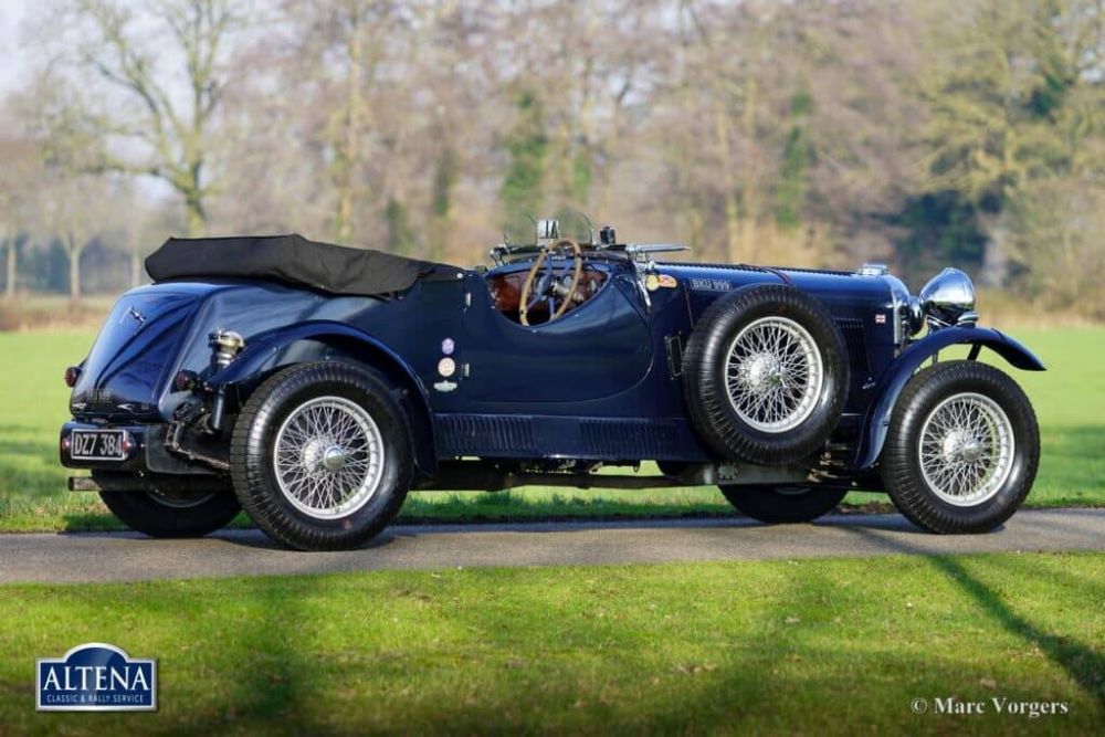 Lagonda LG 45 Sport Special, year 1937. Chassis (VIN) number 12158G10, engine number 12153, original UK registration number BKU999. Colours: Dark blue bodywork, silver wire wheels combined with a dark brown leather interior trimmed with dark blue carpet. Black cloth hood and hood cover. This fantastic Lagonda LG45 was purchased in the UK by Altena Classic Service on behalf of a client. The Lagonda came in as a complete project car with a good chassis, bad bodywork, boxes of original parts and a (specialist) overhauled engine in 2018. The axles and the engine were originally factory fitted to the chassis and have matching numbers. A new bespoke bodywork was made in England on behalf of and according to the wishes of our client. The wishes were: 2 doors, easy to operate hood, sporty looks, robust build, safety, and sufficient storage space. Altena Classic Service have restored and rebuilt the chassis and the mechanical parts bar the engine and the brakes which were already perfectly overhauled in the UK. After arrival of the bodywork Altena Classic Service and partners have taken care of the paintwork, bespoke interior, bespoke hood, and the completion of this wonderful Lagonda Sport Special. During the rebuilt the original gearbox was exchanged for a more robust and easier to operate fully synchronised Alvis four speed unit which improves the driving experience significantly. All the original parts which came with the car like lamps, gauges, and trim were restored to their original glory and fitted again. New 19-inch wire wheels were fitted and 6.50 x 19-inch Blockley tyres. The car comes with an extensive restoration file complete with invoices and the original drawings for the bespoke special bodywork. Costs nor effort were spared to build this unique, great looking, and high-quality vintage special Lagonda.This Lagonda LG 45 Sports Special is a unique and fantastic vintage driver car. The rare 4,5 Litre engine is powerful and runs beautifully. The Alvis gearbox is a delight to operate, and the interior offers plenty of space, comfortable seats and a wonderful dashboard. Sufficient storage space for longer journeys and historic touring events can be found behind the front seats and in the lockable boot. The automobile is in a superb condition and ready to enjoy to the fullest! The current owner has enjoyed the car during the Zandvoort Classic Revival, the 2024 Tulip Rally and on many more enchanting moments! The car is currently registered in the Netherlands. The car can be exported to and registered in any country. This is a rare opportunity to buy a unique vintage Lagonda Sport Special ready to enjoy!