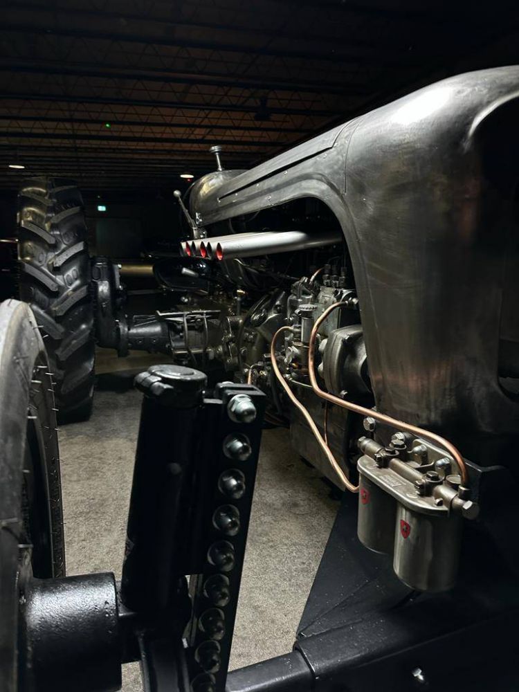 Aufgelegt wurden lediglich*** fünf Exemplare***, die eher als Kunstwerk denn als landwirtschaftliches Nutzgerät zu verstehen sind. Die Karosserie aus blankem Metall sollte im Laufe der Jahre dekorative Patina ansetzen, die hinteren Kotflügel des Basis-Schleppers kamen weg, außerdem wurden sechs einzelne seitliche Auspuffrohre installiert und nicht zuletzt erfuhr der Jubiläums-Traktor eine Tieferlegung - schon deshalb verbietet sich der Einsatz auf dem Acker.