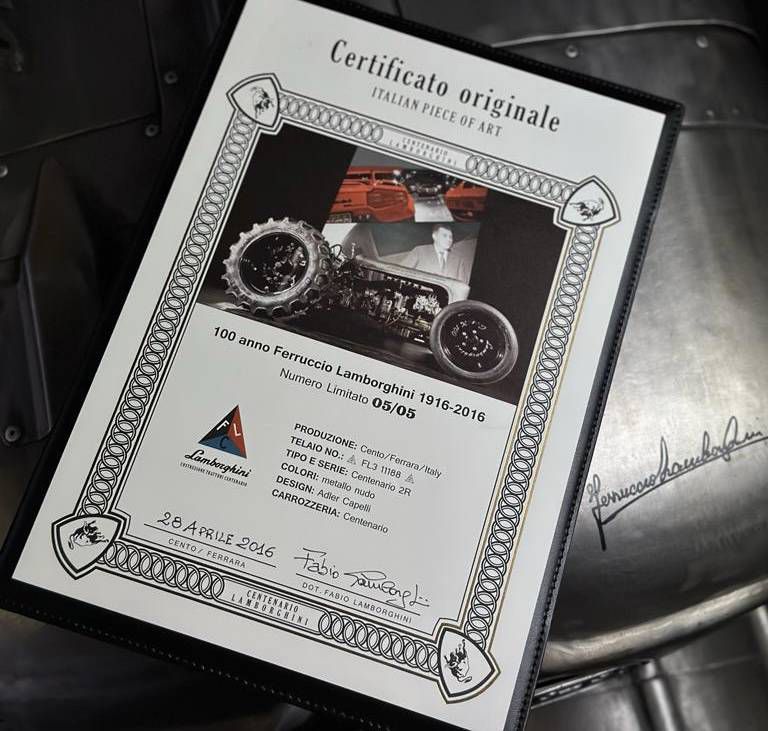 Vor diesem Hintergrund ist es auch zu sehen, dass Lamborghini dem anno 1916 geborenen und 1993 verstorbenen Firmengründer Ferruccio anlässlich seines hundertsten Geburtstags nicht nur mit einem Supersportwagen namens Centenario Tribut zollte, die auf 40 Einheiten limitierte Sonderserie bestand hälftig aus Coupés und Roadstern, aufgerufen wurden mindestens 1,75 Millionen Euro. Gleichzeitig gab die Familie einen Traktor in Auftrag. Geschaffen wurde der Centenario Trattore vom Künstler Adler Capelli, der als Basis den Lamborghini DLA 35 aus den 1960er-Jahren verwendete und ihn mit Teilen des Nachfolgers 2R DRT zu einem voll funktionsfähigen Fahrzeug kombinierte.