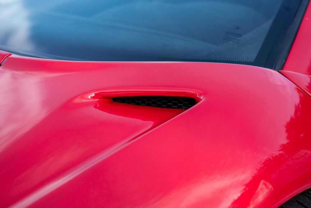 Additional exterior accents include the Jota-Style dual Hoodscoop, a visible aluminum fuel cap and an adjustable rear wing that is optionally co-painted in Diablo Rosso.