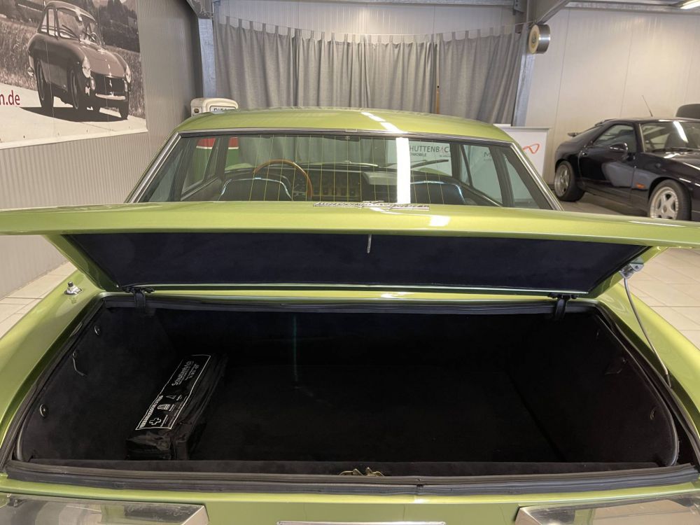 Optische Mängel: Die Chromumrandung auf der Fronthaube fehlt, die Abdeckung in der C-Säule links ist nicht original, die Innenraumleuchte rechts fehlt.