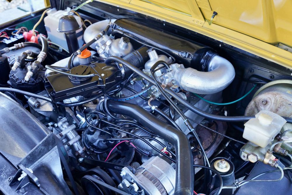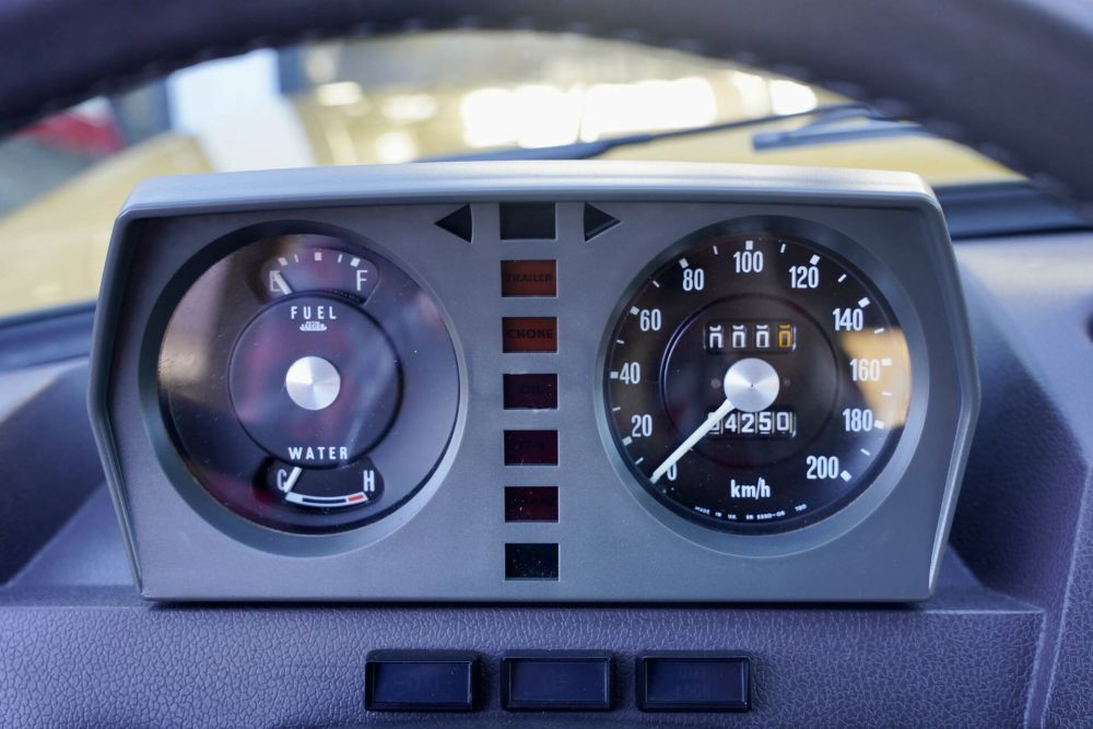 For the past ten years, this Range Rover has resided in prestigious Monte Carlo, and you can feel it. This car exudes class, further enhanced by the completely new interior in golden yellow vinyl and fabric, perfectly matching the exterior. It’s as if you’ve stepped straight into a 1982 showroom.
