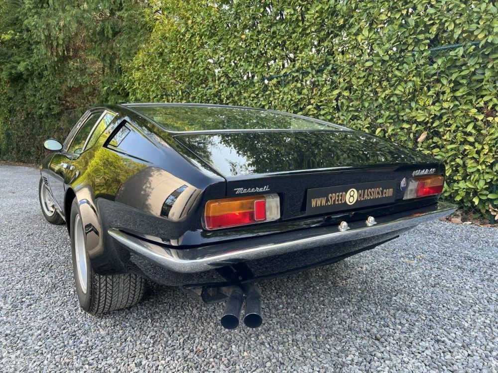 1968 Maserati Ghibli with GR4 style wide-body! Original Italian delivered car with matching numbers engine and all history from new! Engine completely rebuilt in 2020 by Maserati specialist! Technically more than 30000 euro's spent the last years! New radiator, fuel pumps, clutch, tyres...Currently registered in France as véhicule de collection with all papers of F.F.V.E. Very special wide-body Ghibli 4700 with 5-speed manual ZF transmission in top condition!