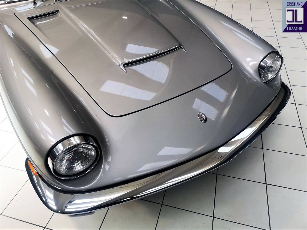 In 2014, before the restoration, it obtained from the Maserati the certificate of origin and the certificate of technical characteristics certifying the production data and the correspondence of both the chassis and engine numbers and the combination of bodywork and interior colors (Montebello gray code max Meyer 16.003 and black Connolly leather code PSC1560).