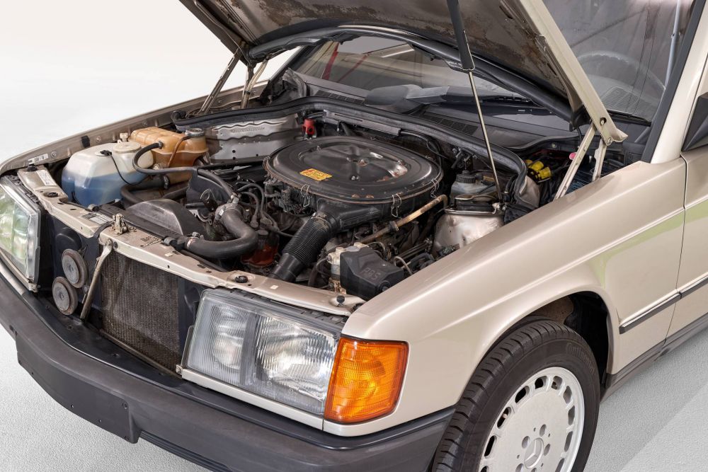 This beautiful third-hand 190E documents the transition from classic to modern at Daimler-Benz. A touch of nostalgia awaits you in our Mercedes 190E, the body is in the color smoky silver metallic, the interior is in fabric brasil, a typically harmonious 80s combination. Admire the elegant design with which Mercedes broke with tradition. For Mercedes, the 190 represents a departure into the modern age, a pioneering model with a drag coefficient of 0.33. The interior has been lovingly preserved and radiates a warm ambience with its patina. This vehicle is a tribute to German engineering and the master craftsmanship of past decades and will take you back to an era when German vehicle construction was the benchmark for the world. Take a seat and let yourself be transported back in time 40 years, marvel at how satisfying and relaxing the ride in this car is! Send us a message so that we can make your dream come true together!