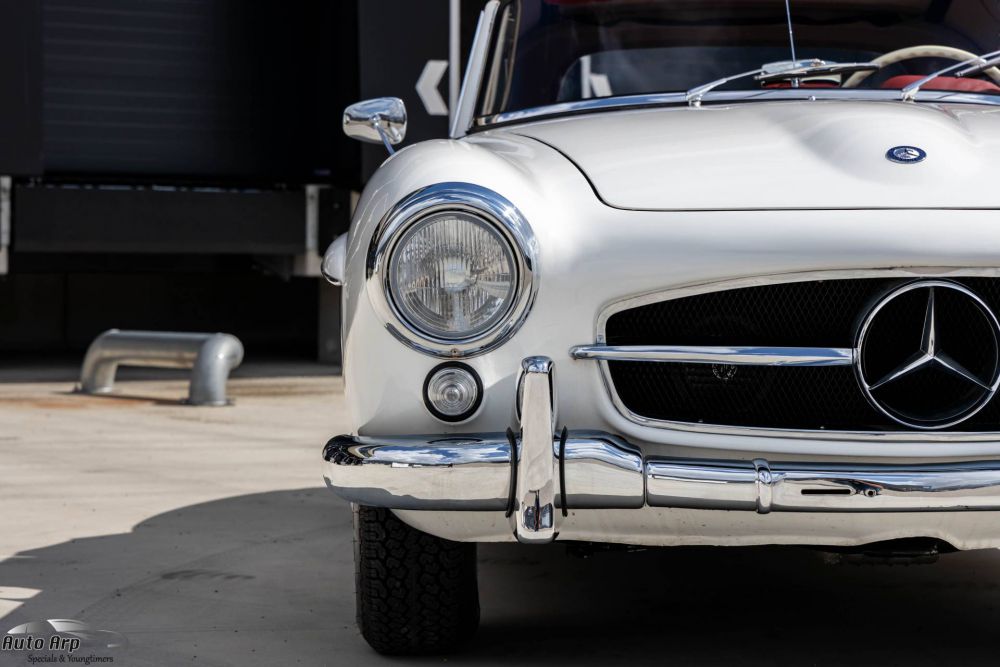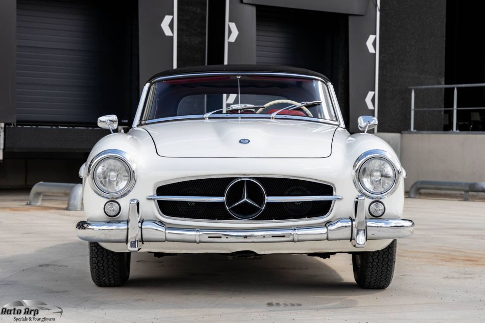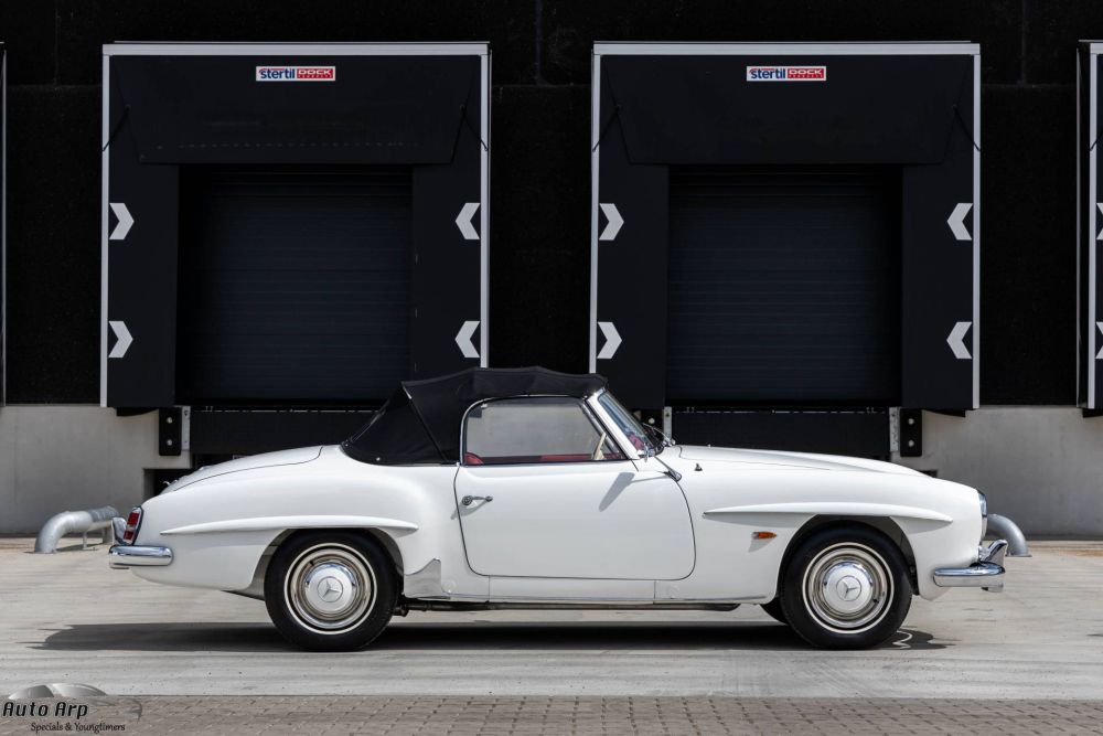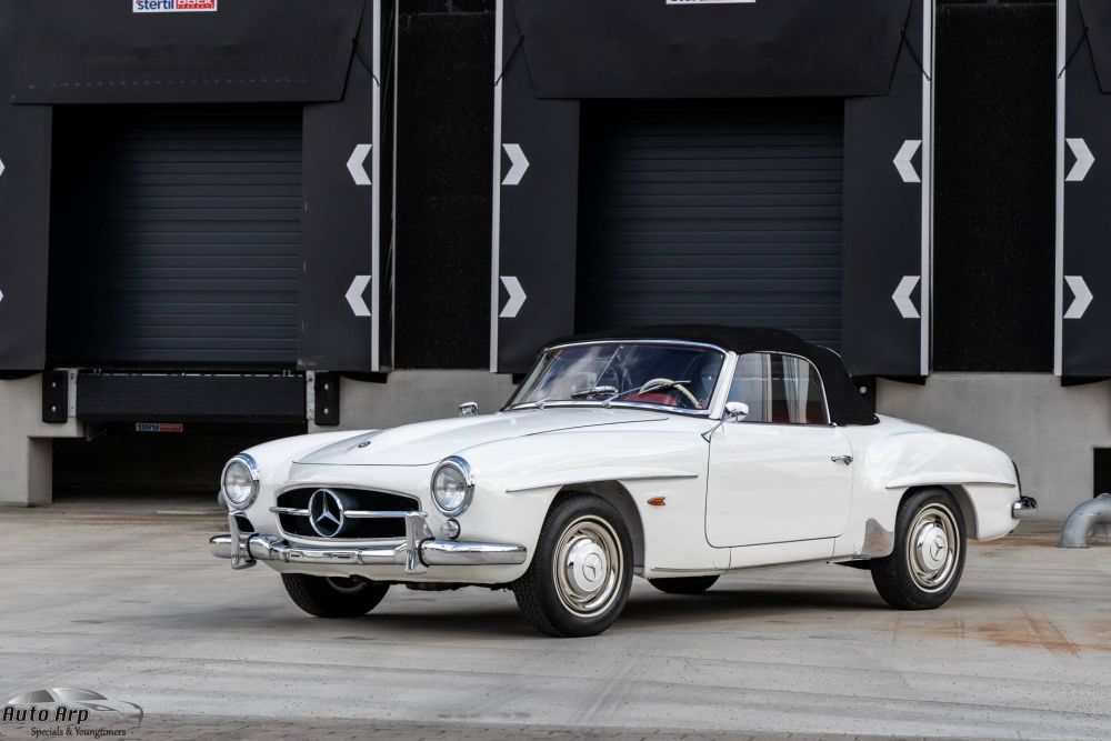 Mercedes 190SL 1958, Papyrus white with red leather interior. This copy has been fully restored and is therefore in new condition. The car has just come out of a private collection. Very desirable, especially now that the 190SL is eligible for the Mille Miglia. Beautiful looks and hassle free to drive, great investment.