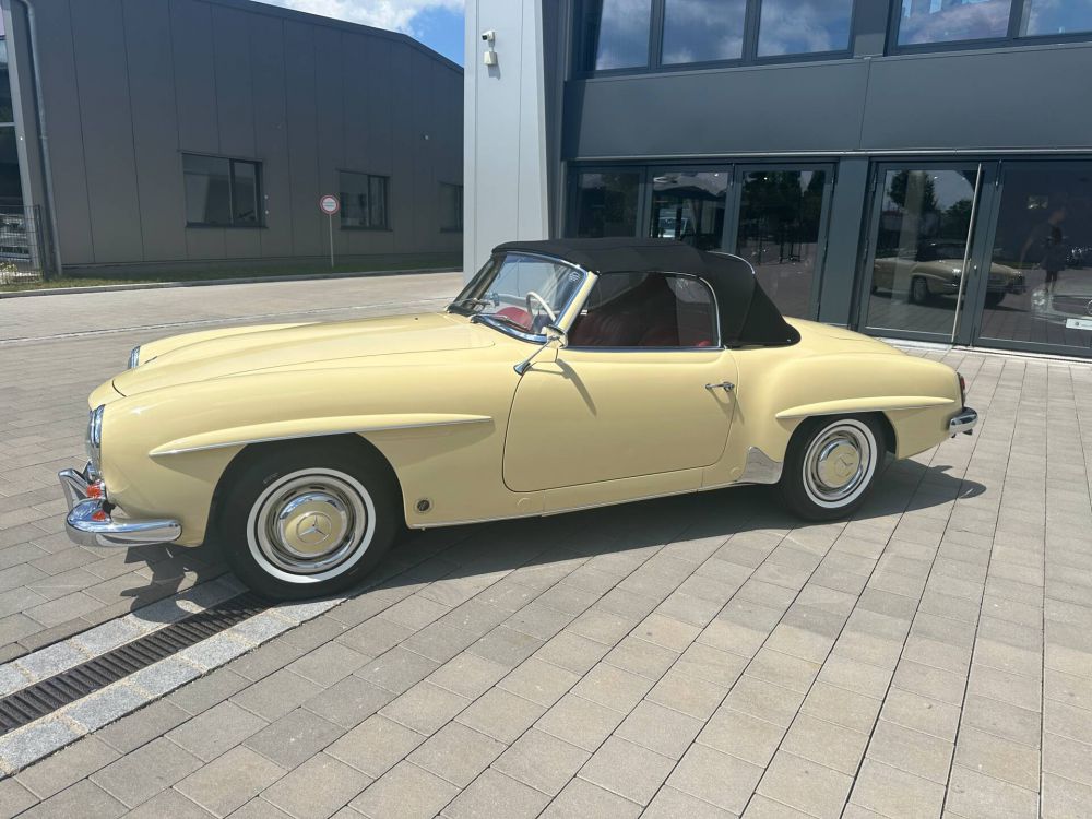 This wonderful Mercedes-Benz 190 SL Roadster in ivory with red interior and black soft top was first registered in America in July 1957. The previous frame-off restoration included the body, paintwork, interior and the complete technology. The vehicle was painted in the delivery color ivory and the interior was finished in red leather. This beautiful 190 SL is delivered with a new service, new tires with whitewalls and a general inspection.