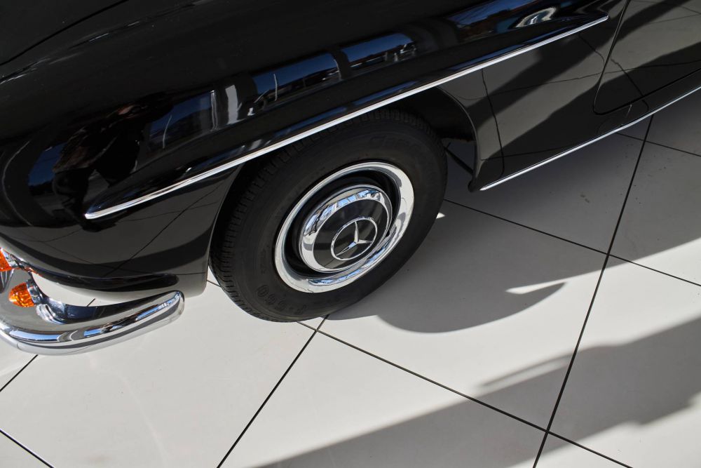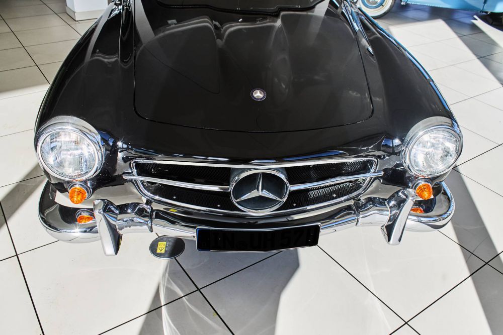 Dieser gegenständliche 190 SL wurde als Neuwagen in die USA geliefert, im Laufe seines Lebens wurde er umfänglich überarbeitet und die Lackierung wurde von Silbergrau auf Schwarz geändert. Seine rote Lederausstattung und seinen originalen Motor blieb diesem Zeitzeugen bis zum heutigen Tage erhalten.
