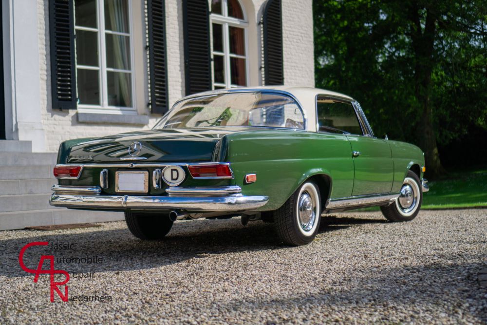 I am pleased to be able to offer you this beautiful Mercedes 220SEB Coupe from the W111 series from 1961. This vehicle impresses not only with its reliable 2.2l engine with 120 HP, but also with its very well-maintained condition after a restoration, which resulted in an expert grade of 2+.