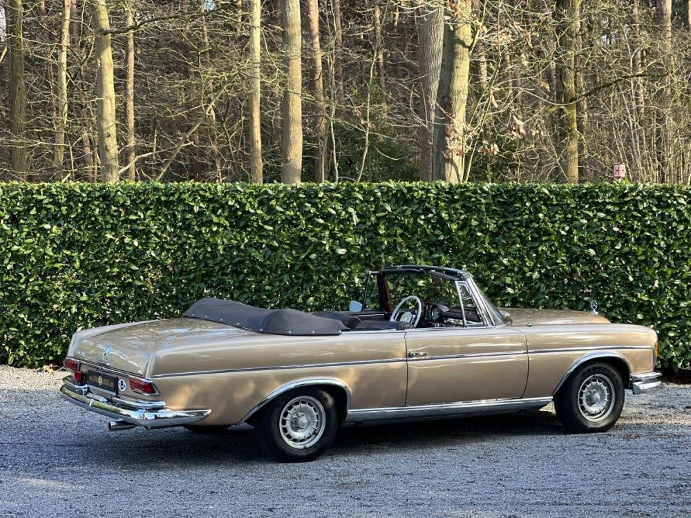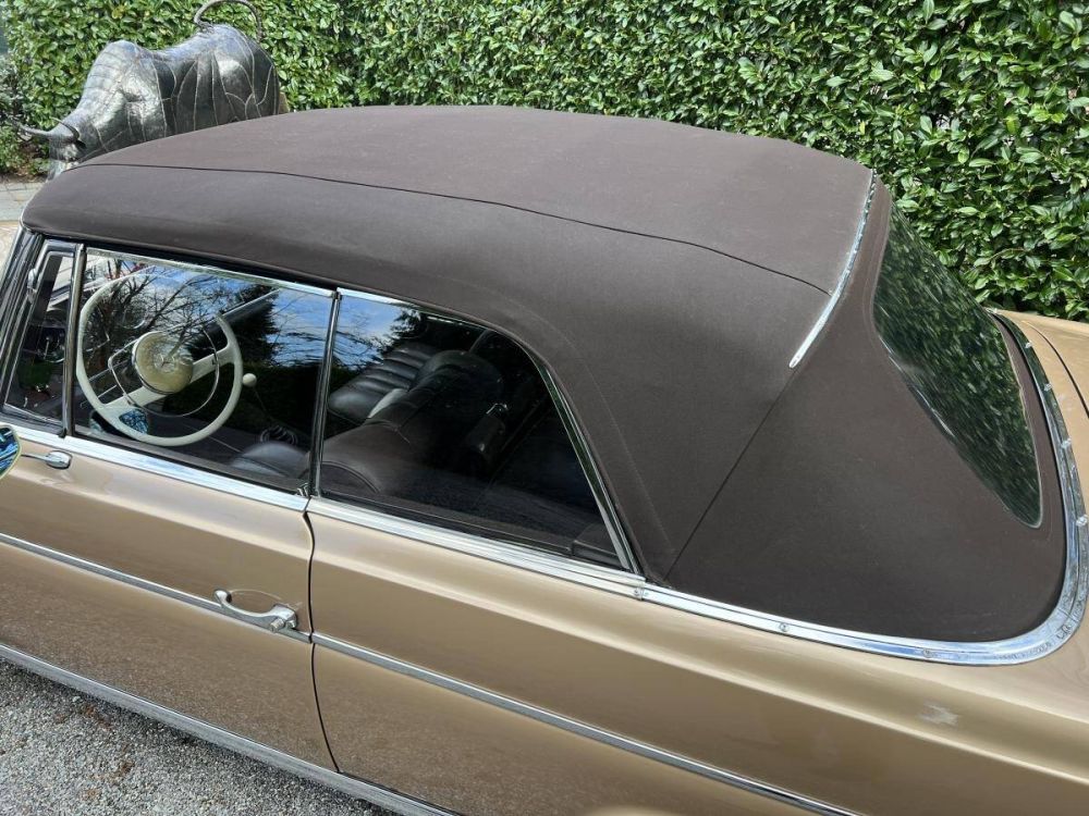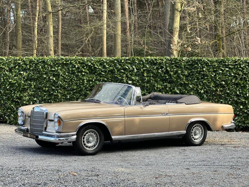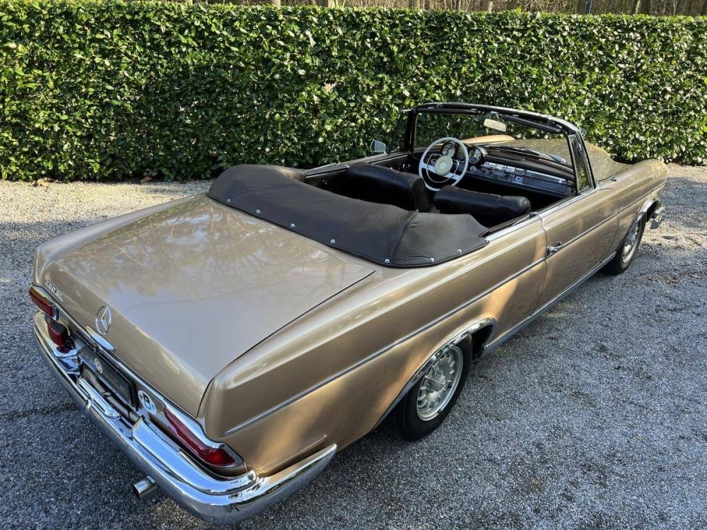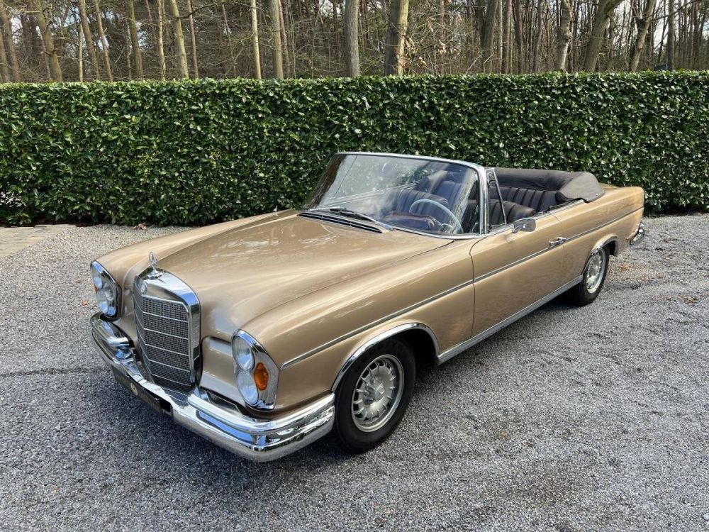 This Mercedes-Benz 220SE W111 Convertible is a fantastic four seats luxury cruiser! Finished in it's original color combination of Gold with chocolate brown leather interior! Perfect and smooth driving with the 120PS 6 cilinder engine and 4 speed manual gearbox. The wooden dashboard and leather interior are in perfect condition! Last owner for more than 35 years! ready for the summer !!!