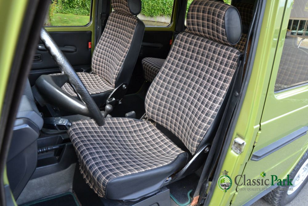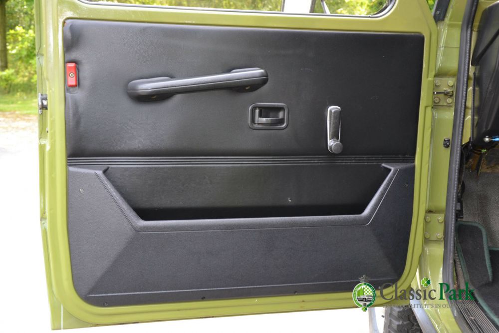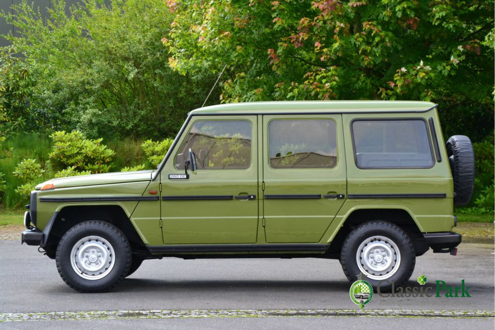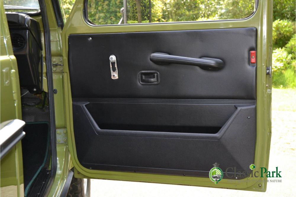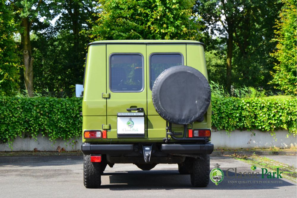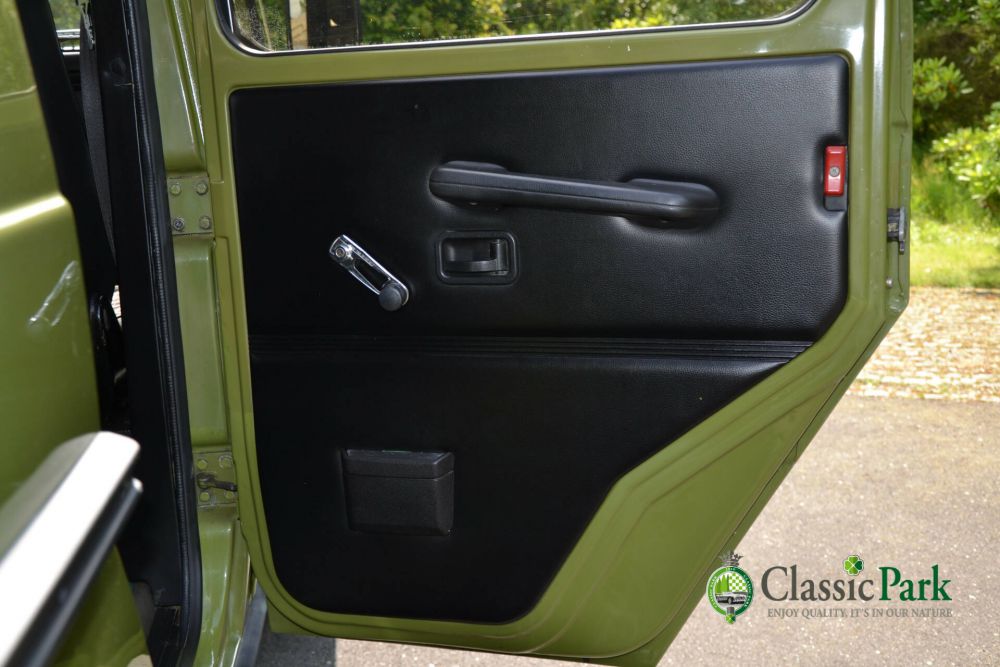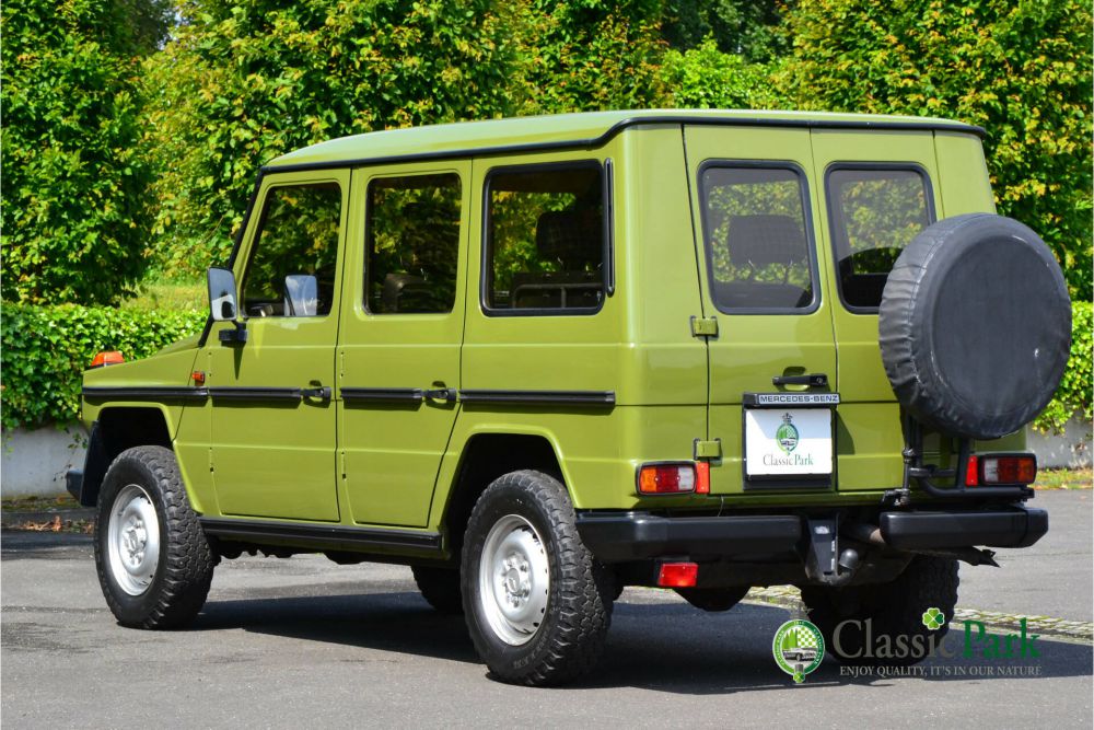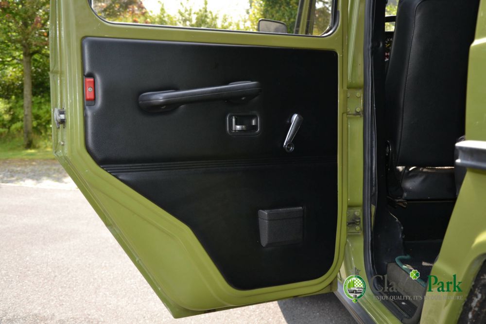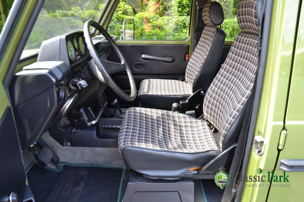 The Mercedes-Benz 280 GE Lang (German for ‘Long’) is the version with six doors and two transversely placed benches in the back. Although the ‘Lang’ version is officially registered as a 5-person vehicle, the car has two rear doors and offers space for no less than 9 people off the public roads. Inherent to this is that when the seats are folded away, there is very much luggage space.