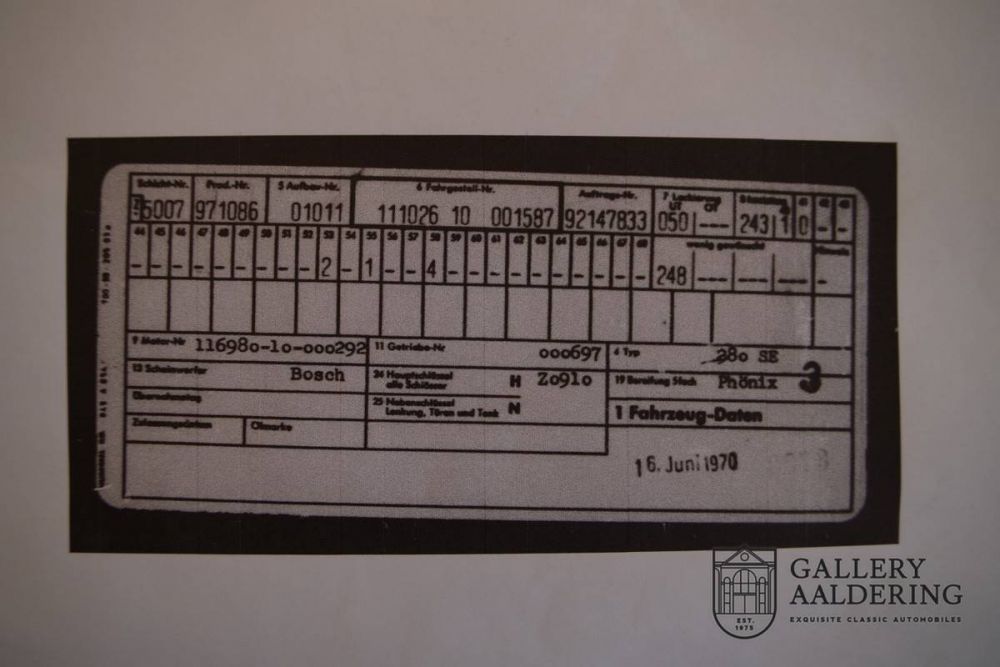 In the past, the car was repainted in the original colour ‘Weiss’ and fitted with a new blue leather interior. The bodywork is straight, and all panel alignments are nice. The underside of this Mercedes is solid. The 280SE features the original and therefore matching number's 3.5 V8 engine. This Mercedes comes with its ‘data card’. This makes this example an exceptional 280 SE Coupé, which rarely appears on the market.