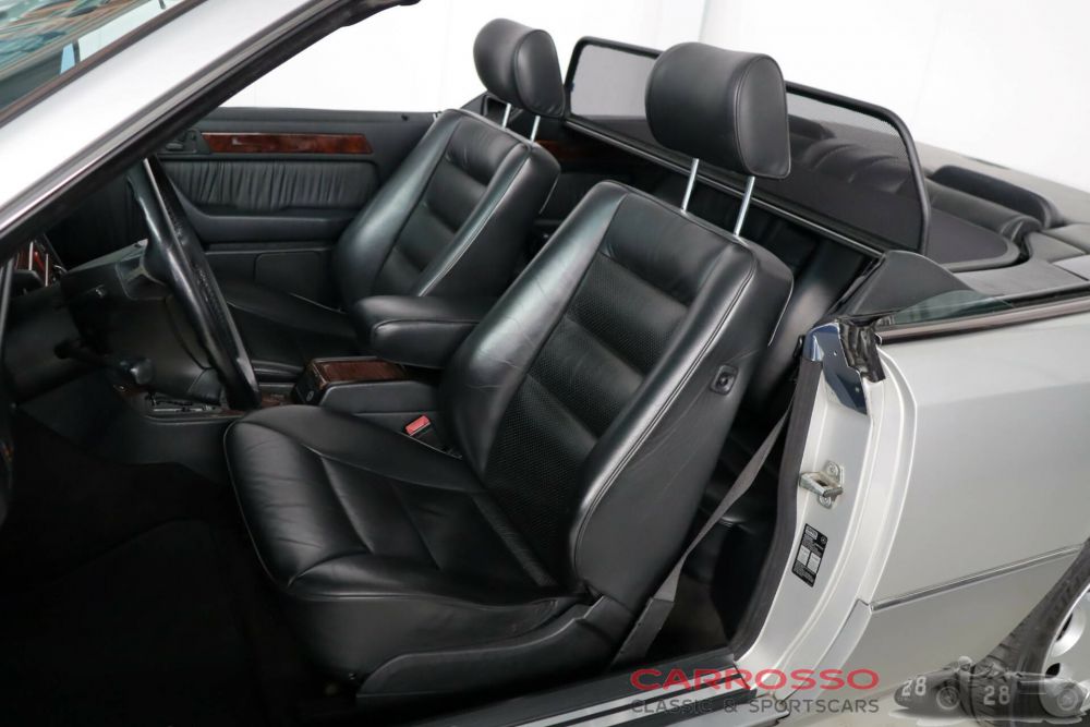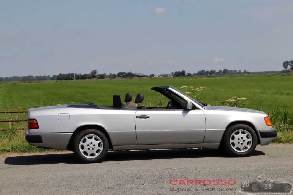 The Mercedes-Benz W124 is the first E-Class: a luxurious high-medium class car built from 1984 to 1995. With over 2.5 million units built, it was an incredibly successful model, of which relatively few convertibles were built at over 30,000 (specifically of the 300 CE-24 over 6,000 units). The convertible was introduced in 1991: a car from which not simply the roof was taken off but from which more than 1,000 components were modified to ensure the rigidity of the bodywork. The car was available with several engines and the 300 CE-24 is equipped with the 2,960cc 6-cylinder inline engine with 221 hp. A powerful and smooth engine that took the car to 100 km/h in less than 9 seconds. As befits Mercedes, safety and innovation was a high priority when developing the W124. Thus, the convertible features an automatic roll bar, airbags, electronically adjustable steering adjustment and vibration dampers to optimise comfort. Prices of the W124 convertible today vary and depend on the level of originality and mileage, among other factors.