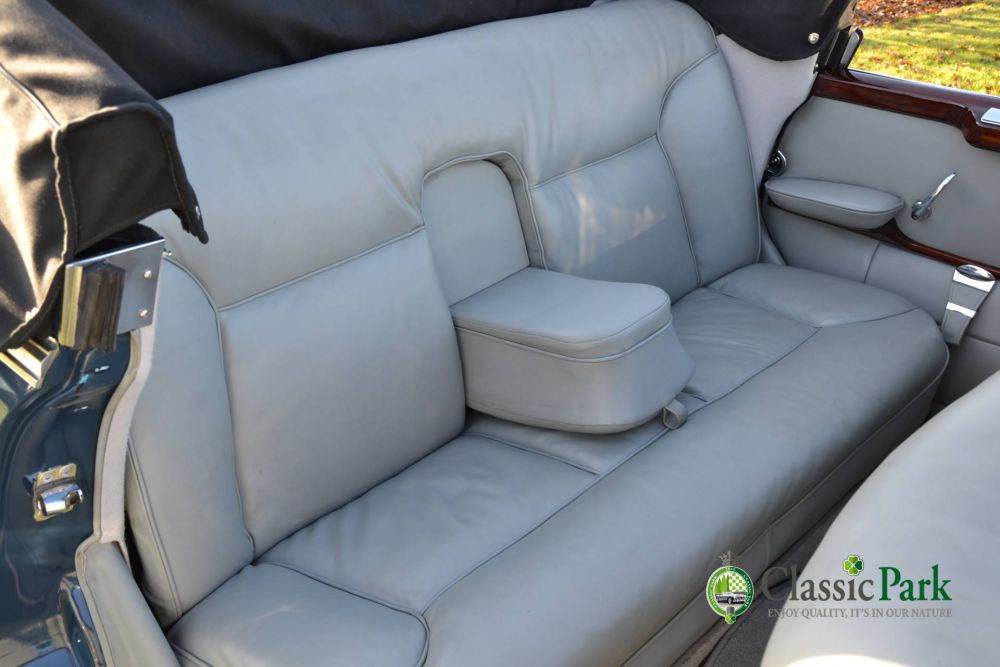 This Mercedes-Benz 300 Dora was built in 1958 and was imported to the Netherlands in 1965. The 300 Dora was one of the top models of Mercedes-Benz at the time. The Dora offered by Classic Park has been converted into an exclusive four-door convertible. This conversion could be carried out without any problems because the car is still built on an independent chassis. The entire conversion to a convertible was carried out very professionally. The chosen colors elegantly appeal to the years of origin. The hood is in new condition and the interior is in very nice condition as well. Due to its stately and distinguished appearance, it is always a pleasure to arrive by this car. In the back there is ample room for three adults who, despite the convertible version, have plenty of foot space.