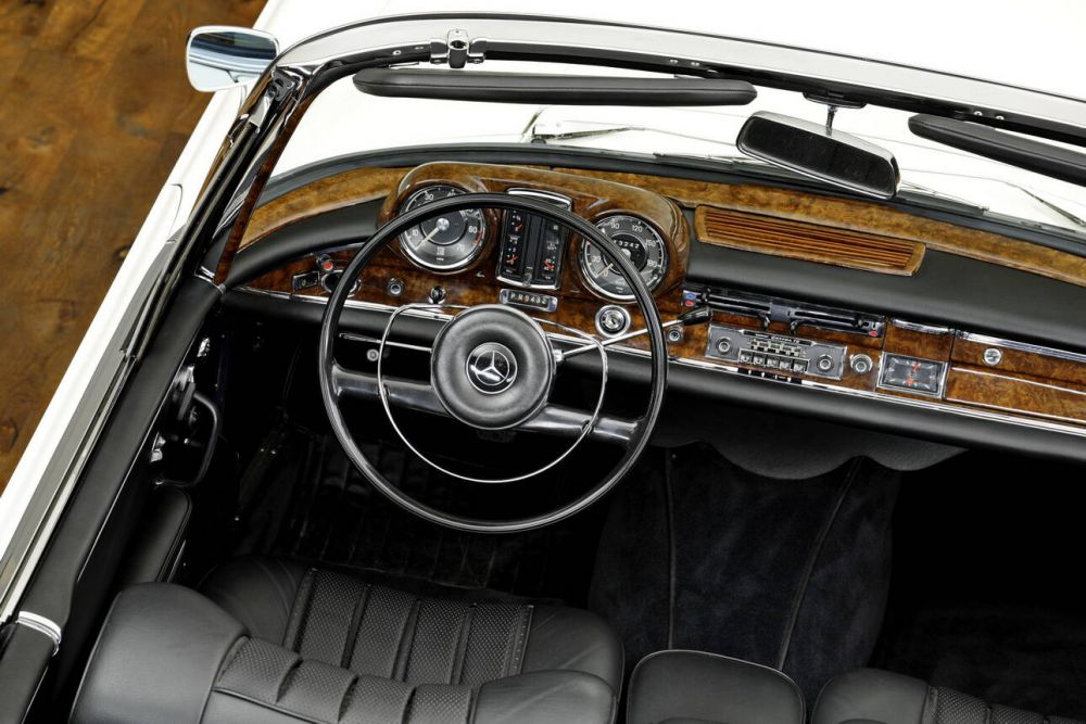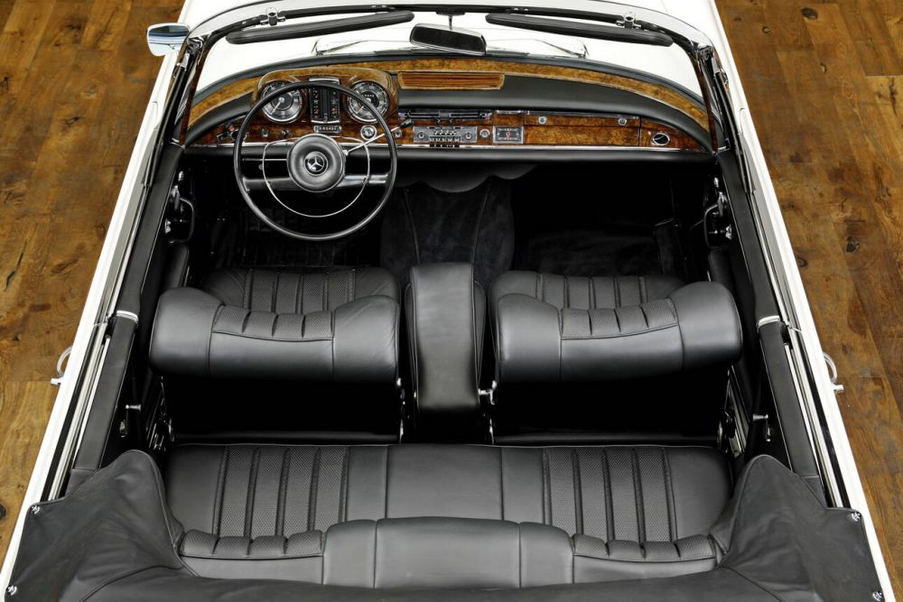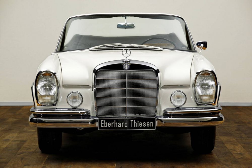 The top model of the S-Class at the time with elaborate technical equipment, one of only 708 convertibles built Timeless and original colour scheme in white (DB 050) with black leather interior and black soft top Very comprehensive restoration with detailed documentation High-quality state of preservation Engine “matching numbers Contemporary Becker Europe radio Mercedes Benz data card available