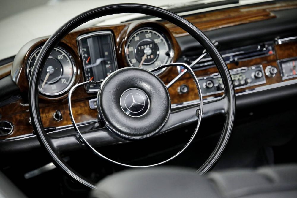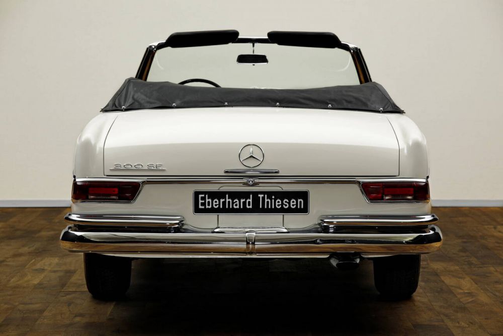 The Mercedes Benz 300 SE Cabriolet presented here was completed on 19 July 1963 according to the available factory data card. It first went to the USA, where it remained after several changes of ownership until 1990 and was then imported back to Germany. Today, the Cabriolet still (or again) has its timeless, original colour scheme with white exterior paintwork (colour code DB 050) as well as a black leather interior and soft top.In Germany, the new owner carried out a very comprehensive restoration of the car, which was documented in detail. In the course of this, the car was practically rebuilt in the body shell from the floor assembly to the roof. Numerous invoices are available on the extensive work regarding bodywork, mechanics, interior, upholstery, paintwork and chrome trim, which was carried out to the highest standard. There is hardly a component that has not been replaced or reworked. The engine was also carefully and extensively overhauled in all components. The total financial investment at the time probably totalled around 170,000 to 200,000 DM. Numerous photos provide evidence of the thoroughness and masterly craftsmanship that was applied here. As a result, the car was probably in the same or even better condition than when it rolled off the production line in Stuttgart in 1963. The 300 SE Cabriolet subsequently had several owners in Germany (all names known), whereby the car's excellent condition was always maintained. The result of the high-quality restoration can still be seen today: Due to the few kilometres driven kilometres and the owners’ careful treatment, the engine compartment, the underbody, the interior and of course the body have a great overall appearance. The vehicle also impresses on the road at a high level. The engine responds well, the automatic gearbox shifts smoothly, the steering is direct and there are no rattling noises even on poor roads (e.g. cobblestones). In 2021, the car was sold by EBERHARD THIESEN to the collection of an established enthusiast in Germany. We have now been commissioned by him to pass the vehicle on to the next dedicated connoisseur who can enjoy this exceptional 300 SE Cabriolet. The current expenditure for a comparable restoration is probably higher than our asking price of EUR 195,000. Mercedes Benz had already delivered a major success in 1959 with the new model series W 111 tail fin, which offered a prestigious appearance and the best workmanship typical for the brand. In addition, the with new luxury saloon also debuted the “crumple zone” patented by Béla Barényi. Together with a padded dashboard and innovative door locks, that did not spring open so quickly in the event of an accident, it introduced a market-leading safety standard. In 1961, the company went one better and presented a new top-of-the-range saloon model, the 300 SE (separate W 112 series). This was powered by a 3-litre in-line six-cylinder engine with mechanical intake manifold injection and an output of 160 hp. Its sophisticated technical equipment included a newly developed four-speed automatic transmission and disc brakes on all four wheels for sufficient deceleration. The innovative air suspension, which was installed for the first time at Mercedes, enabled a levelled, comfortable ride regardless of the load. Even when braking, the rear end no longer rose thanks to the new suspension. A power steering and the standard differential lock supported the driving characteristics of the top-notch model. Visually, it was recognisable by the extended chrome trim with wheel arch surrounds and a centre trim strip from front to rear. One year after the launch of the 300 SE saloon, the coupé and cabriolet versions of the model made their debut as companions to the coupé and cabriolet of the W 111 (220 SE and 250 SE). They did not have the emphasised rear fin of the saloon, which together with the flatter roofline resulted in an elegant and clearly more timeless appearance. Regardless of the body version, a 300 SE was a member of an exclusive circle. Even the 300 SE saloon cost at least 24,500 DM – the price of four and a half VW Export Beetles. If you ordered the cabriolet or coupé version with some optional features, the price could quickly double. The coupés and cabriolets of the 300 SE outlived the saloon and were built alongside its successor (W 108) before they were finally discontinued in 1967. A total of 2,419 Mercedes 300 SE Coupés and only 708 Cabriolets left the factory halls. Mercedes reintroduced an S-Class Coupé with the C 126 SEC, which was launched in 1981, although a Cabriolet version was not available. Today, a 300 SE is a rare and sought-after vehicle from Mercedes heritage – especially the Cabriolets, which were already rare at the time.