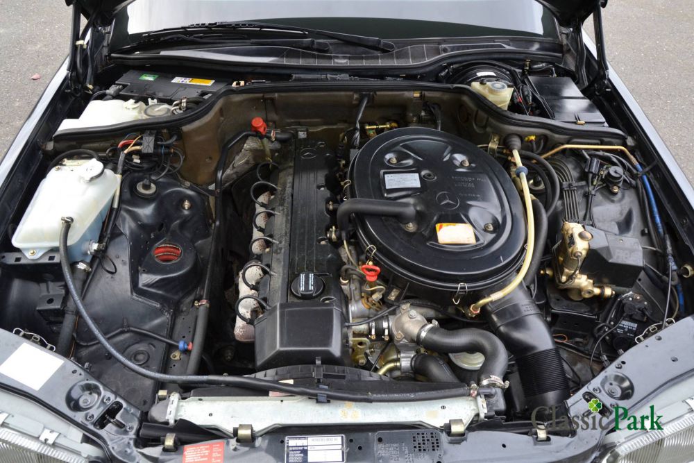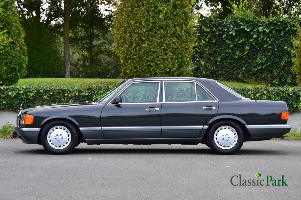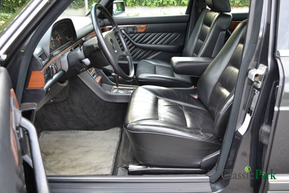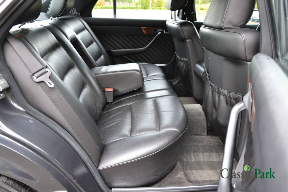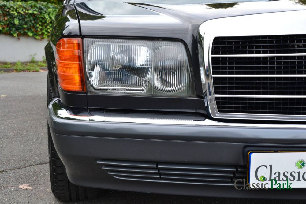 The Mercedes-Benz 300 SE is a representative of the W126 series, the S-class from the eighties. Before the facelift, it was equipped with the 2.8 liter engine. However, the copy at Classic Park was delivered new in Japan after the facelift and has the 180 hp 3-liter injection engine under the hood. The car has “Black-blue-metallic” paint and the interior has sumptuous black leather upholstery. This example is packed with extras, such as an automatic gearbox, electrically adjustable seats, cruise control, automatic air conditioning, chic 15-hole alloy wheels, speakers and reading lamps in the rear, and the like. With an average of approximately 3000 km/year, this is a relatively low mileage of 96658 kilometers. The stately 300 SE is in very good condition and carries a Dutch registration since 2022.
