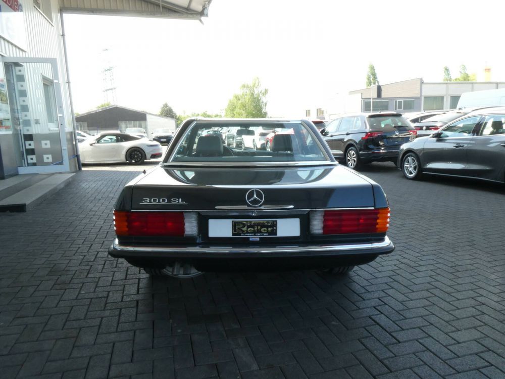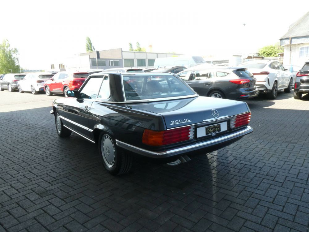 Dieser Mercedes-Benz 300 SL wurde am 04.09.1989 in Sindelfingen ausgeliefert und am 06.09.1989 in Kassel erstmals zugelassen. Zwei Jahre später ging das Fahrzeug in den Besitz des letzten Besitzers. Der originale Kilometerstand von 38.000 Kilometern ist durch diverse Rechnungen und das lückenlos gepflegte Scheckheft nachweisbar. Der Zustand des SL gleicht einem Neuwagen. Das Fahrzeug befindet sich komplett im ersten Lack und hat eine unberührte Karosserie. Die graue Lederausstattung befindet sich im makellosen Zustand. Der aktuelle TÜV ist gültig bis Februar 2026.