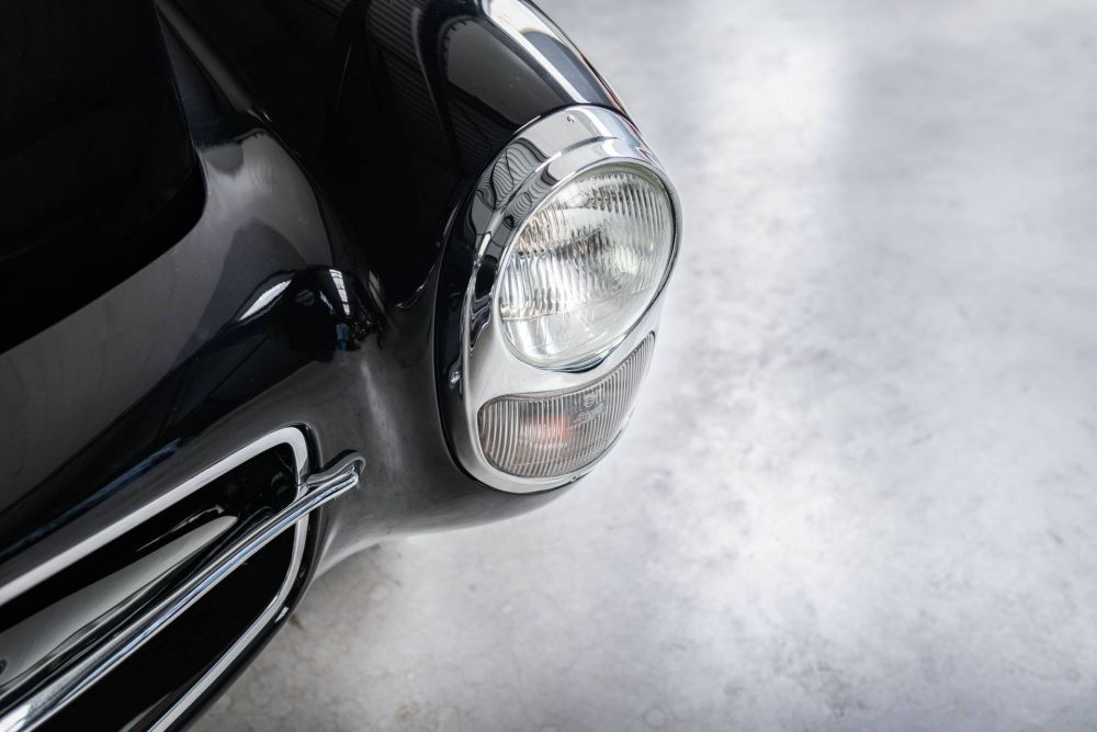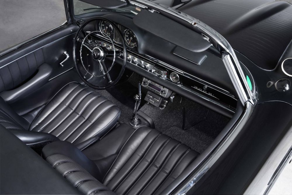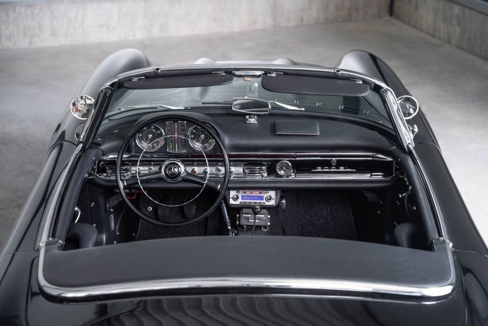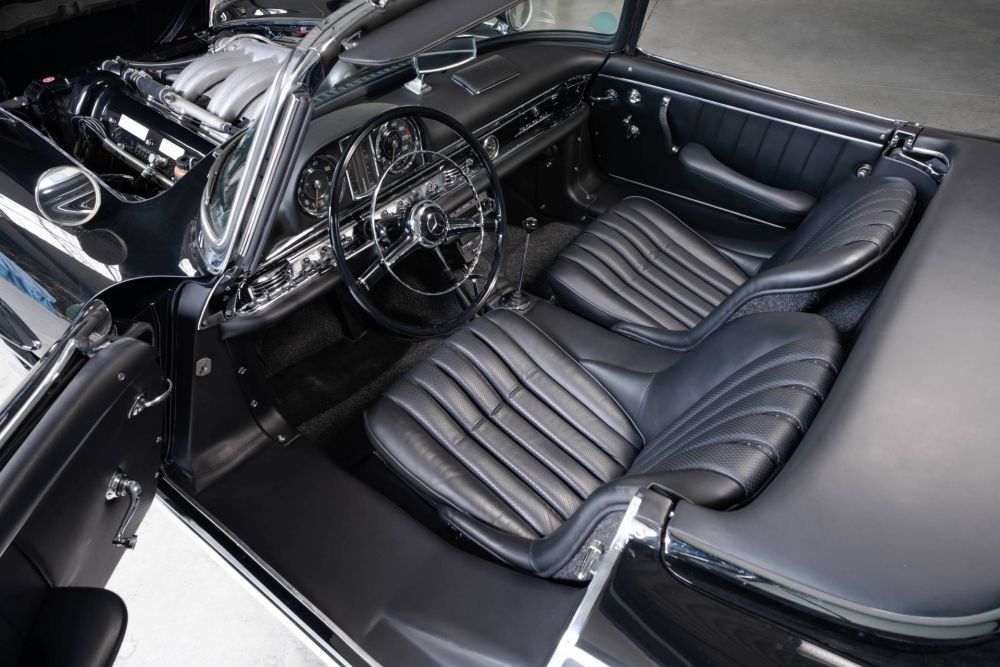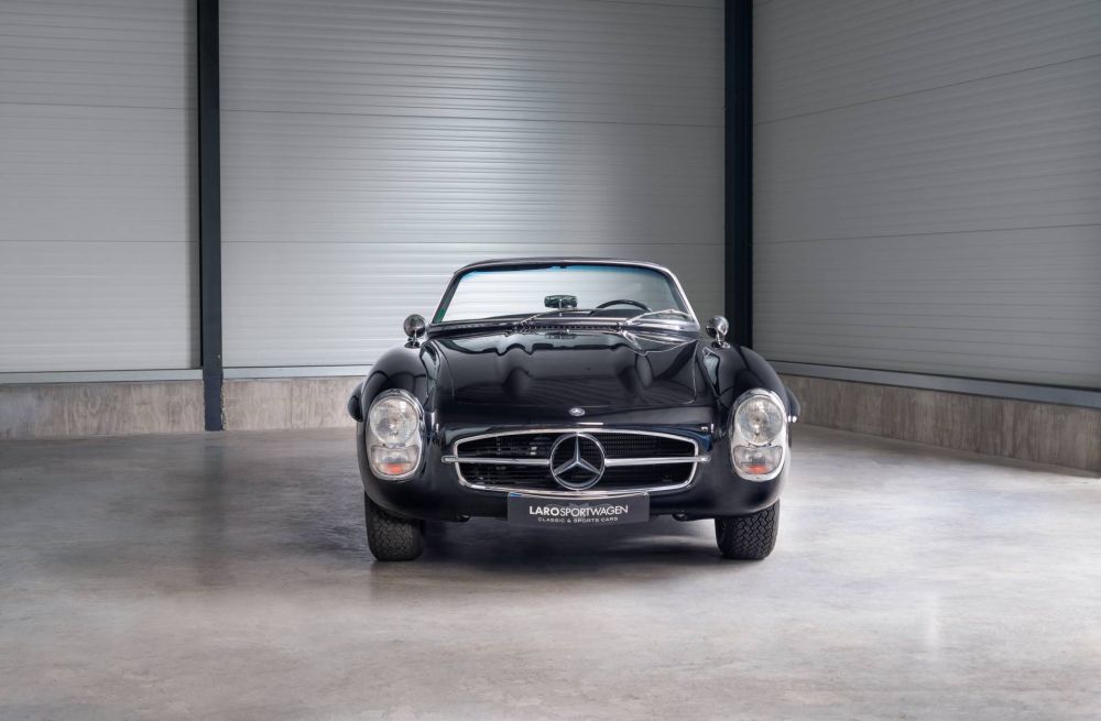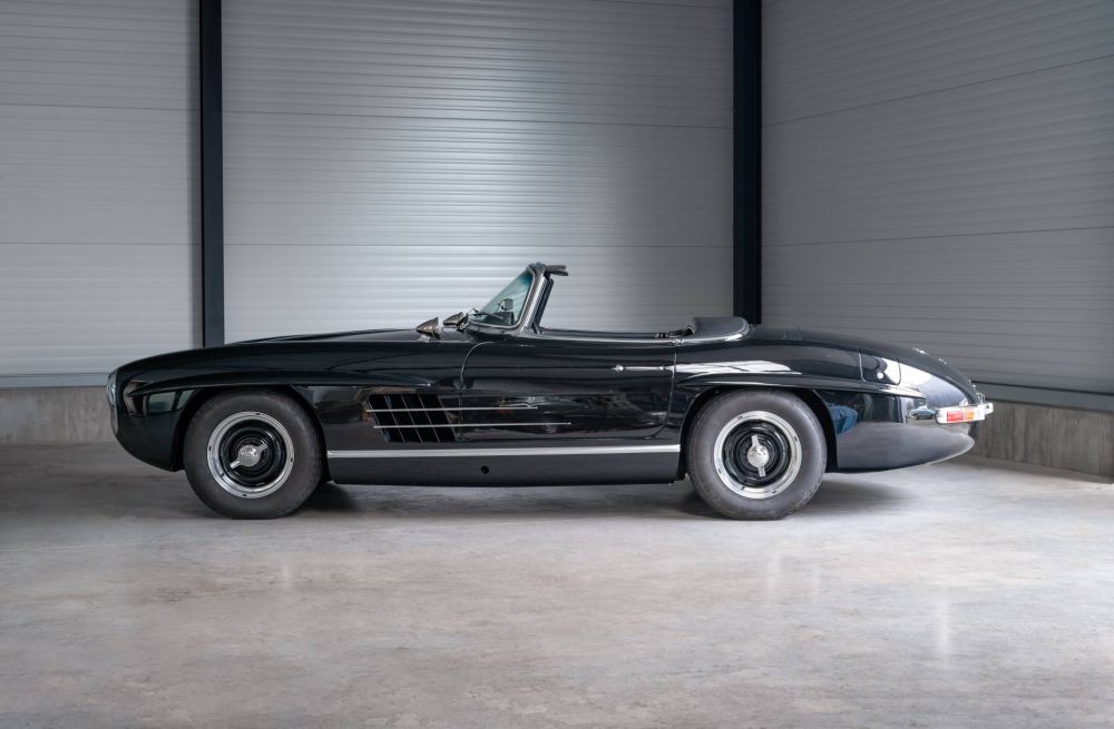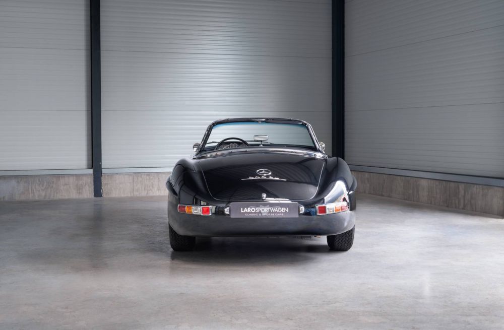 Zum Angebot steht ein von uns restaurierter Matching - Numbers Mercedes-Benz 300SL Roadster aus dem Jahre 1961, der als letzt gebauter Trommelbremser das Werk verlassen hat. Der Lack wurde bis auf das blanke Blech entfernt und in DB040 schwarz neu aufgebaut. Der Reihensechszylinder wurde vollständig und fachgerecht revidiert. Vorder- und Hinterachse sowie die gesamte Bremsanlage wurden vollumfänglich überarbeitet. Darüber hinaus wurde ein Scheibenbremsen- Umbau an der Vorderachse durchgeführt und auf Rudgefelgen umgerüstet. Das Leder in der Farbgebung schwarz wurde komplett neu beledert und befindet sich somit im Neuzustand. Das Cabrioletverdeck wurde neu überzogen. Der 300SL wurde im Zuge der Restauration auf SLS-Look umgebaut. In diesem Rahmen wurden die Stoßstangen entfernt, das Heck fachmännisch rund gemacht sowie die vorderem Stoßstangendurchführungen zugeschweißt. Der Mercedes hat Edelstahl - Sidepipes erhalten mit Umschaltung auf laut / leise, das Besondere hierbei ist ein eigens entwickelte System, das seitlich einen Ausgang und einen weiteren Ausgang nach hinten bietet. All diese Umbaumaßnahmen können wieder vollumfänglich zurückgebaut werden. Sämtliche Teile dafür, wie beispielsweise die original Stoßstangen, sind vorhanden. Die Restaurationsarbeiten erfolgten in den Jahren 2014-2015. Die gesamten Restaurationsarbeiten lassen sich anhand vorliegender Rechnungen nachvollziehen. Der 300SL wurde in den Jahren stetig gewartet und nur wenig gefahren, insgesamt nur 4.117km nach den Restaurationsarbeiten. Das Fahrzeug wird mit TÜV und H Abnahme übergeben. Überzeugen Sie sich selbst anhand der Bilder von dem eindrucksvollen Mercedes-Benz oder vereinbaren Sie gern einen Besuchstermin mit uns, um über weitere Details persönlich ins Gespräch zu kommen. Überblick: