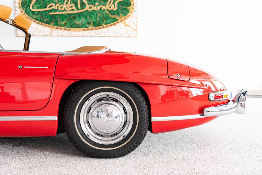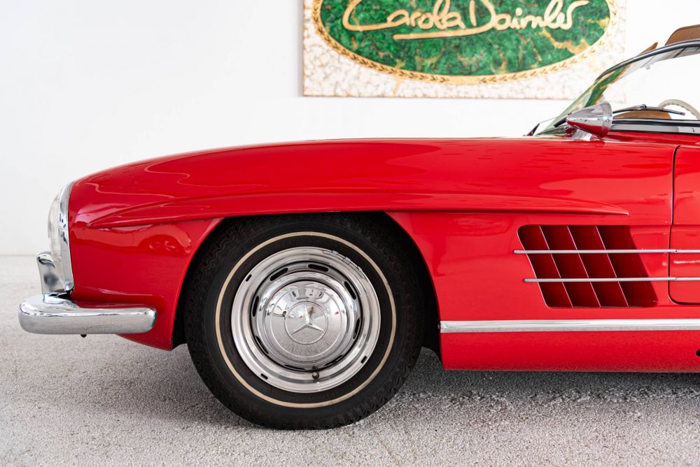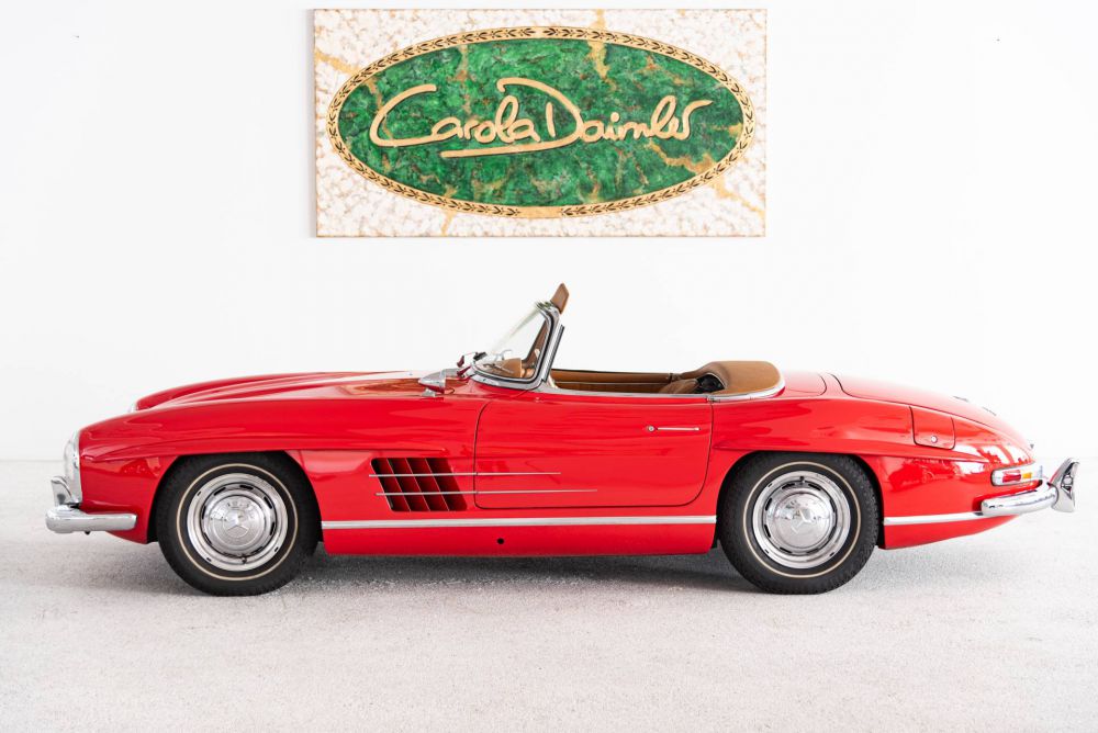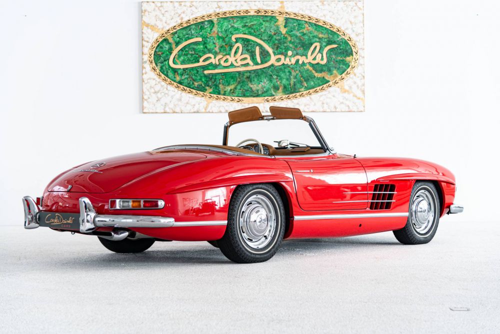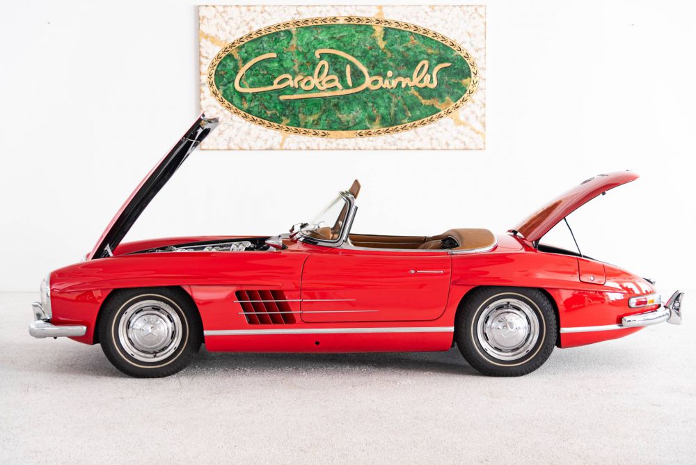 The Mercedes-Benz 300 SL Roadster W198 II offered for sale here was delivered to the Sophie Stecker knitwear factory in Schmallenberg-Sauerland on 29.05.1959 via the Mercedes-Benz branch in Dortmund. In the late sixties, the roadster spent its time in America. The last US title was issued in 1976 in California to Malus Ray John. The latter sold the car to Germany in 1991 to the current owner. At that time, the 300 SL was in need of restoration. Back in Germany, the owner immediately decided to have it restored. The bodywork and technology were completely overhauled or renewed.