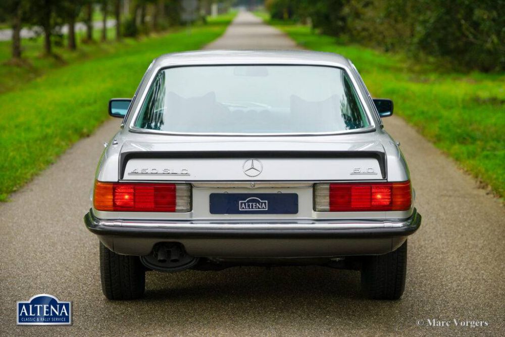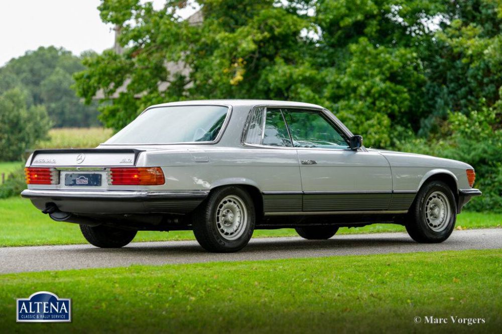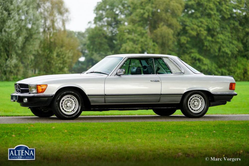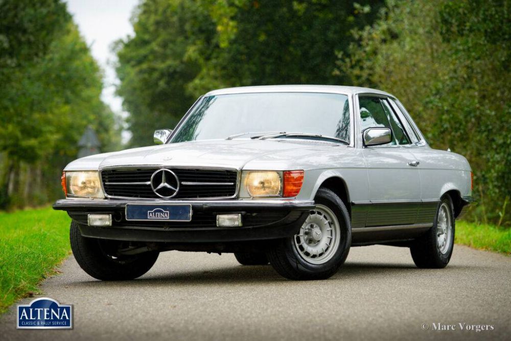 Mercedes-Benz 450 SLC (C107), year 1978. Chassis (VIN) number 10702612000166, engine number 117960-12-000177. The original ‘datenkarte’ is present! Colour silver metallic combined with a blue leather interior and blue carpet. This fantastic Mercedes 450 SLC was sold new in Italy, in the year 2000 the automobile was imported to the Netherlands. From new the car has driven only 146.000 kilometres. The 450 SLC with 5.0 V8 engine is a rare classic Mercedes model, only 2769 examples were built. This Mercedes 450 SLC is in a very good and super original condition! This example shows all the original details and only light signs of previous use. It is very special to find this 45 years old Mercedes model in such a well-preserved and untouched condition! The car was beautifully serviced over the years, and the car runs and drives perfectly! This fine Mercedes-Benz is fitted with a factory original electrically operated sunroof, four electrically operated windows, an automatic gearbox, the very desirable original MB alloy wheels, original Bosch fog lamps, and a Philips radio CD stereo system. The original plastic front spoiler is still present and in good condition. This is a very desirable and rare Mercedes-Benz 450 SLC in wonderful original condition!