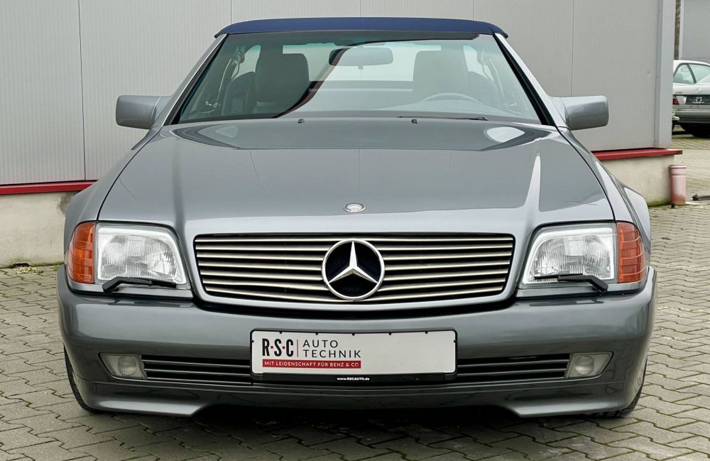 Schöner Mercedes Benz SL Typ R129 in einer aussergewöhnlichen Farbkombination.  Graumet./ Leder und Softtop Dunkelblau.Das Hardtop ist vorhanden. Technisch wurde er von uns überarbeitet.Es wurden folgende Arbeiten durchgeführt: