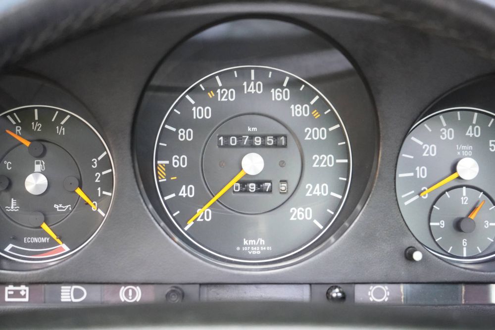 Bis heute hat der 500 SLC erst 107.951 km gelaufen. Der Motor ist noch der erste, also „matching numbers“.