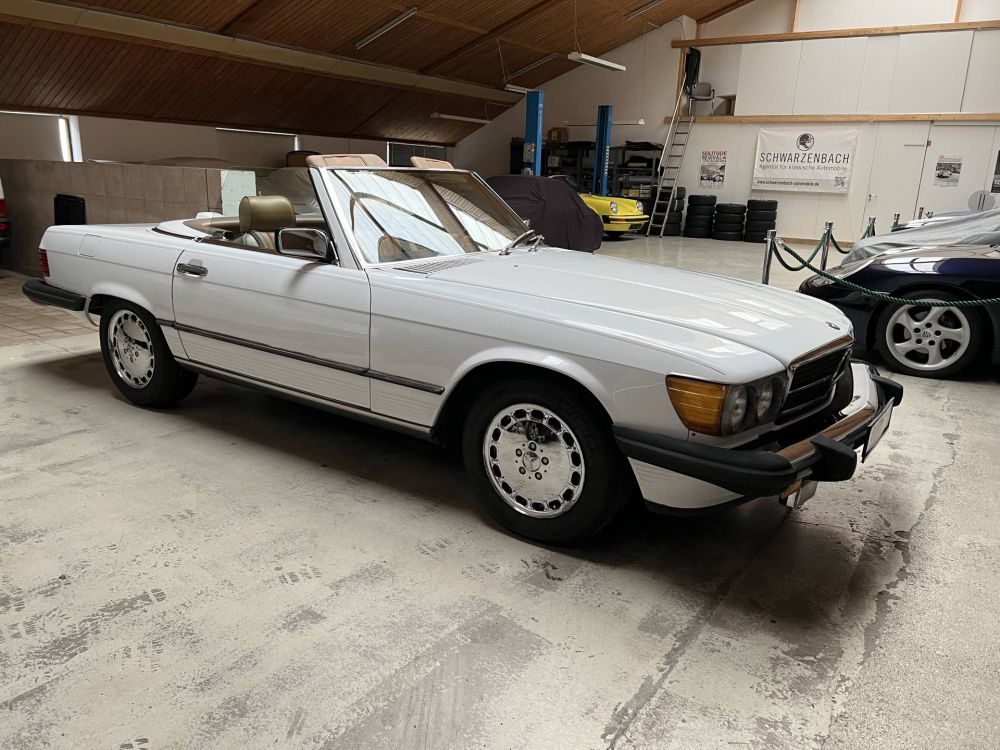 Im Angebot befindet sich ein Mercedes R107 560 SL, erstmals zugelassen am 01.07.1987 in den USA.