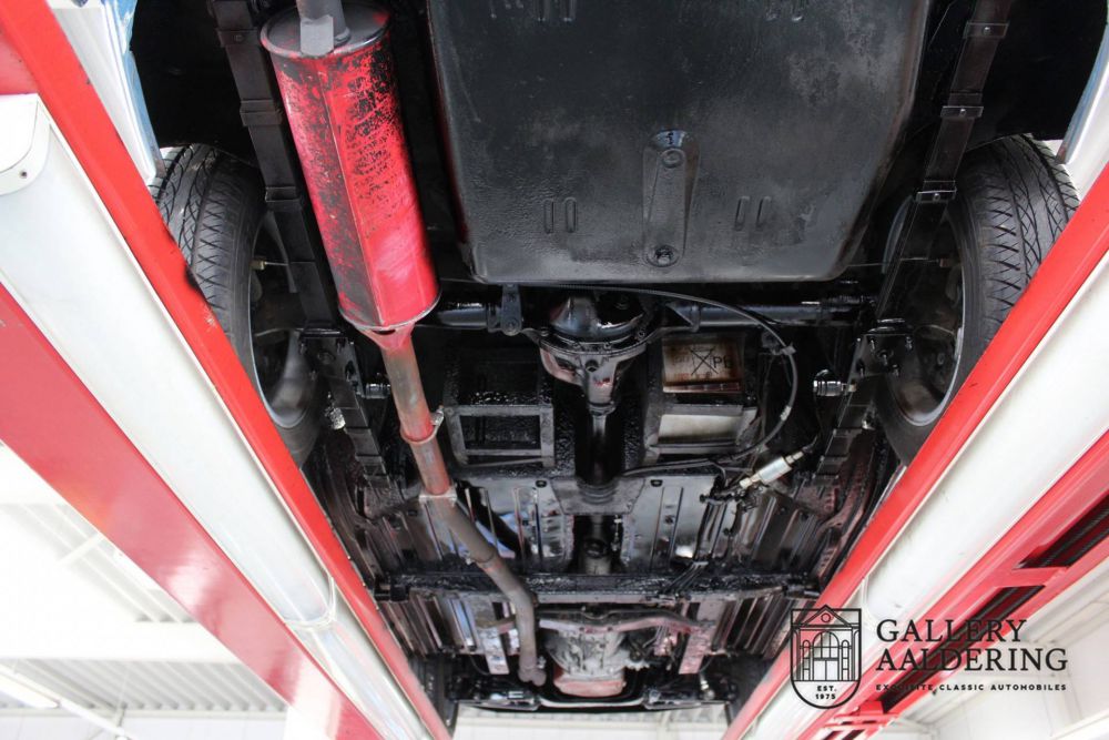 Both chassis and bodywork are still in great shape and look just fine. The interior has maintained its very good condition with lovely black leather upholstery and well-fitting black carpets. The dashboard top and instrument cluster have also received the necessary good attention. The vinyl hood was replaced with a new one during the process. Before fitting the new hood the frame was completely overhauled and repainted. The hood is in good shape and fits properly. A tonneau cover of course forms part of the party.