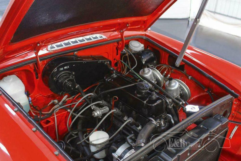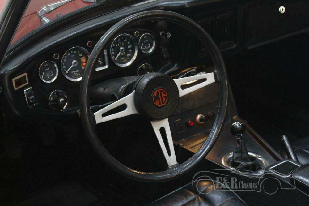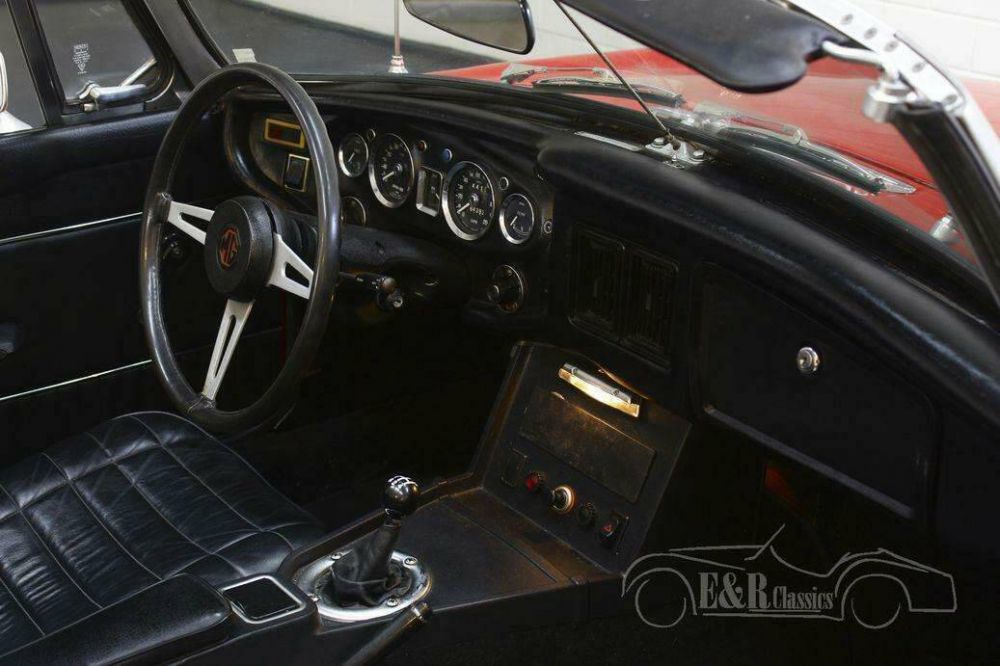 This MGB Cabriolet is what a British Classic Car should look like. Beautiful red paint, chrome wire wheels, black soft top and beautiful chrome. The overall picture of this English classic car is completely correct. The interior is in good condition and has dark upholstery that combines nicely with the red paint. In short, a well-maintained and very complete MGB Cabriolet that is completely ready for many beautiful summer tours.