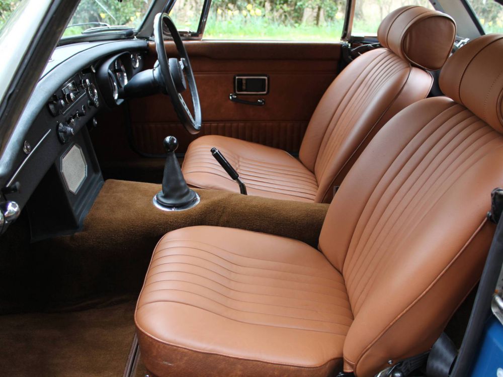The MGB was taken to a Hertfordshire based specialist and the car fully stripped down for assessment. The body was then subject of fabrication work, preparation and then a full re-paint including underbody in the cars original colour of Teal Blue. The car was mechanically and electrically overhauled and the engine stripped down for rebuild. The engine block was re-bored, new pistons and rings supplied and fitted, new main bearing shells, oil pump and new timing chain fitted. The engine was built up with all new gaskets, the cylinder head rebuilt, clutch replaced, and the carbs fully rebuilt. The brakes were all renewed with new pads and discs, the front suspension rebuilt with poly bushes, the overdrive stripped and rebuilt with new gaskets. The gearbox, steering rack and suspension were checked, blasted, re-painted and re-fitted to the car.