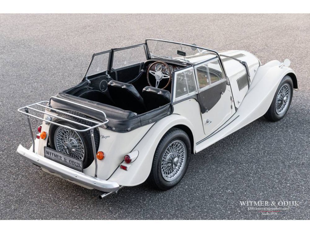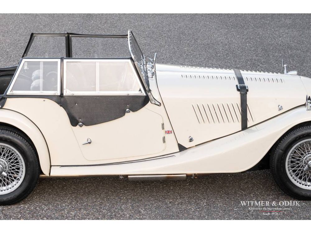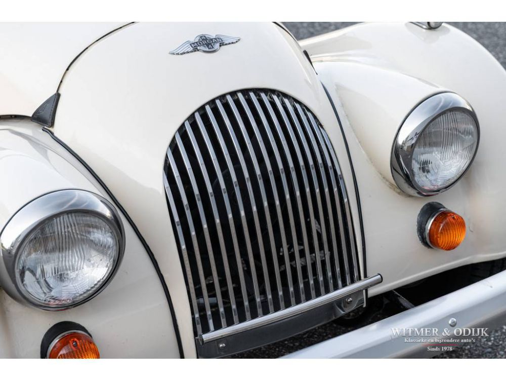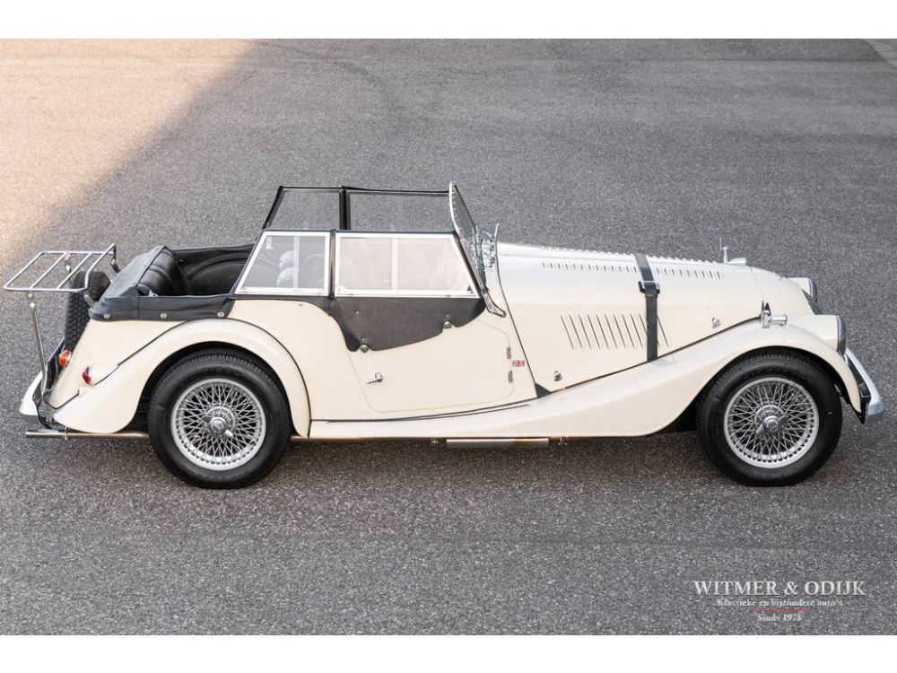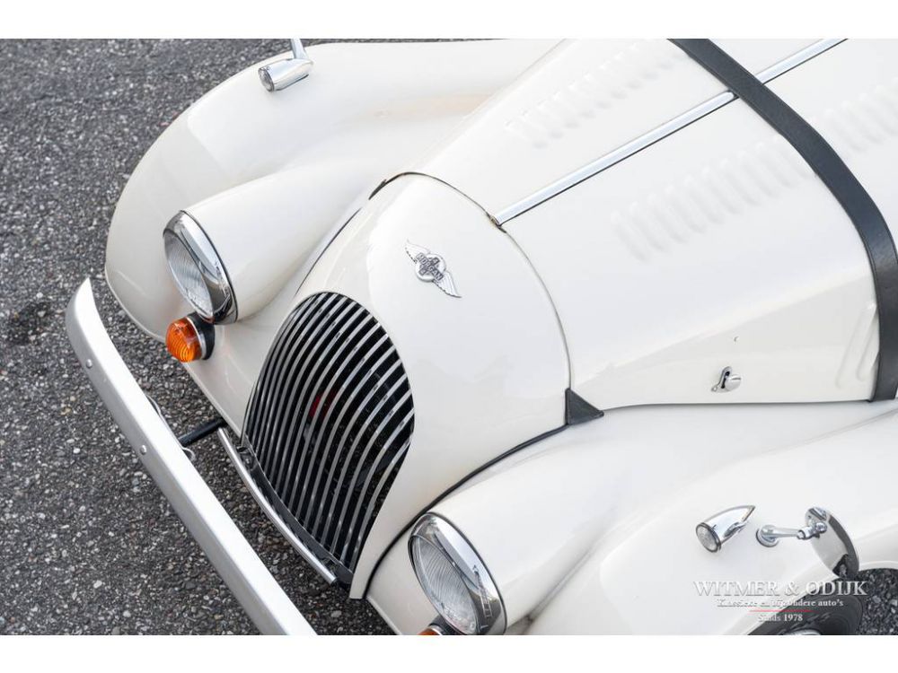 Onder leiding van alweer de derde generatie Morgan's bouwt het gelijknamige bedrijf in het Engelse Malvern bij Worcester nog steeds iconische sportauto's op dezelfde basis zoals ze dat ook al voor 1940 deden. De basis vormt een stalen chassis met een houten frame. Hout wat in het groene gebied rondom Malvern ruim voorhanden is. De eerste Morgan met vier wielen was al in 1936 geintroduceerd en werd na de oorlog tot 2019! doorgebouwd. Omdat het geen driewieler was en de motor vier cilinders had werd de typeaanduiding 4+4. De 4 in de typeaanduiding staat dus niet voor vier zitplaatsen, deze 1600TC heeft er gelukkig wel vier. Hoe leuk is een open klassieker waar bijvoorbeeld kinderen achterin kunnen, daar zijn er niet veel van. Door de gehele levenscyclus heen werden er verschillende motorvarianten gebruikt. Een van de fijnste motorvarianten was de in deze Morgan gebruikte Fiat 1600 motor die bijna 100pk naar de achterwielen wist te brengen, dit in combinatie met een zeer betrouwbare ZF vijfbak uit Duitsland. Een heerlijk soepel en desgewenst 'snelle' 4+4 was het resultaat. Nu lijkt het met uw hoofd in de wind al best snel hard te gaan...Het hier aangeboden exemplaar voorzien van de 1600 Fiat motor is voor de Europese markt gebouwd, de motoren van Ford die ook gebruikt werden, haalde de hier geldende emissie eisen niet meer. In 2017 kwam de auto vanuit Duitsland naar Nederland, afkomstig uit langdurig familiebezit. De Duitse eigenaar en historie is evenals de enige Nederlandse eigenaar bij ons bekend. Bij de auto is een uitgebreid dossier waarin zich zelfs de originele aankoopnota nog bevindt. De auto én het verhaal zijn hier beiden in orde. Rekeningen, historie, APK rapporten, etc. alles present. Uit de aanwezige documentatie blijkt ook het fanatiek uitgevoerde onderhoud. De auto is altijd roest- en ongevalvrij gebleven. Het zal lastig worden een originelere en beter gedocumenteerde 4+4 te vinden. Rijklaar staat ze bij ons in de showroom. Zie onze website voor meer dan 100 foto's www.witmerodijk.nl of u gebruikt de volgende link, https://witmerodijk.nl/te-koop/morgan-4-plus-4-4-seater-1600tc-1982/2174