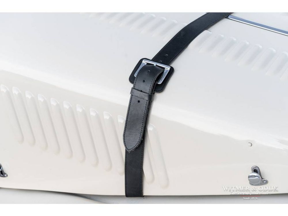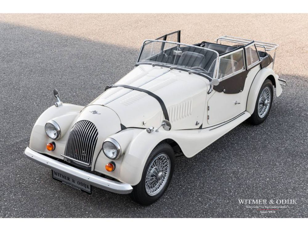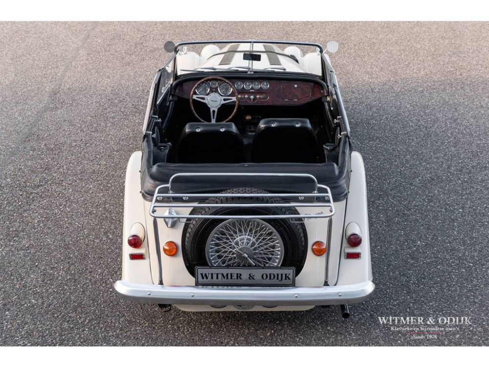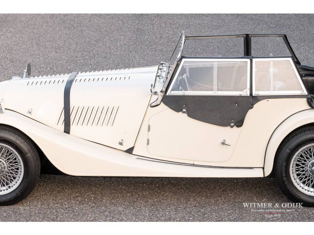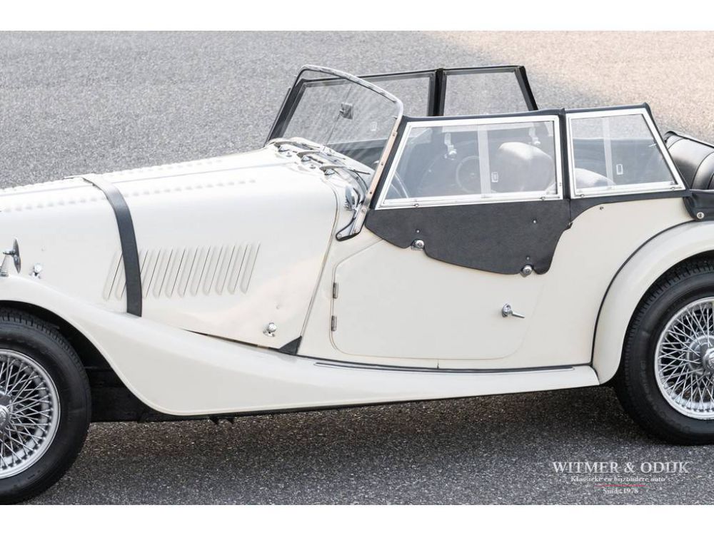 Onder leiding van alweer de derde generatie Morgan's bouwt het gelijknamige bedrijf in het Engelse Malvern bij Worcester nog steeds iconische sportauto's op dezelfde basis zoals ze dat ook al voor 1940 deden. De basis vormt een stalen chassis met een houten frame. Hout wat in het groene gebied rondom Malvern ruim voorhanden is. De eerste Morgan met vier wielen was al in 1936 geintroduceerd en werd na de oorlog tot 2019! doorgebouwd. Omdat het geen driewieler was en de motor vier cilinders had werd de typeaanduiding 4+4. De 4 in de typeaanduiding staat dus niet voor vier zitplaatsen, deze 1600TC heeft er gelukkig wel vier. Hoe leuk is een open klassieker waar bijvoorbeeld kinderen achterin kunnen, daar zijn er niet veel van. Door de gehele levenscyclus heen werden er verschillende motorvarianten gebruikt. Een van de fijnste motorvarianten was de in deze Morgan gebruikte Fiat 1600 motor die bijna 100pk naar de achterwielen wist te brengen, dit in combinatie met een zeer betrouwbare ZF vijfbak uit Duitsland. Een heerlijk soepel en desgewenst 'snelle' 4+4 was het resultaat. Nu lijkt het met uw hoofd in de wind al best snel hard te gaan...Het hier aangeboden exemplaar voorzien van de 1600 Fiat motor is voor de Europese markt gebouwd, de motoren van Ford die ook gebruikt werden, haalde de hier geldende emissie eisen niet meer. In 2017 kwam de auto vanuit Duitsland naar Nederland, afkomstig uit langdurig familiebezit. De Duitse eigenaar en historie is evenals de enige Nederlandse eigenaar bij ons bekend. Bij de auto is een uitgebreid dossier waarin zich zelfs de originele aankoopnota nog bevindt. De auto én het verhaal zijn hier beiden in orde. Rekeningen, historie, APK rapporten, etc. alles present. Uit de aanwezige documentatie blijkt ook het fanatiek uitgevoerde onderhoud. De auto is altijd roest- en ongevalvrij gebleven. Het zal lastig worden een originelere en beter gedocumenteerde 4+4 te vinden. Rijklaar staat ze bij ons in de showroom. Zie onze website voor meer dan 100 foto's www.witmerodijk.nl of u gebruikt de volgende link, https://witmerodijk.nl/te-koop/morgan-4-plus-4-4-seater-1600tc-1982/2174