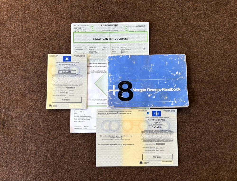 This Morgan was delivered new to Germany and was owned by a German owner for 24 years. In 1999, the car was purchased by a Dutch enthusiast who had the Morgan extensively restored and serviced. He owned the car until 2006, when the +8 moved to Belgium. The +8 now belongs to the third owner and is once again in the Netherlands. The exterior is very beautiful and a fortune has been spent in the past to keep the Morgan in this condition. The Morgan has been repainted in the iconic 'British racing green' colour and the quality of the paintwork is of a high standard. The doors hang properly and close perfectly. According to all the maintenance invoices, a complete restoration has taken place.