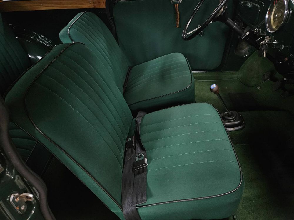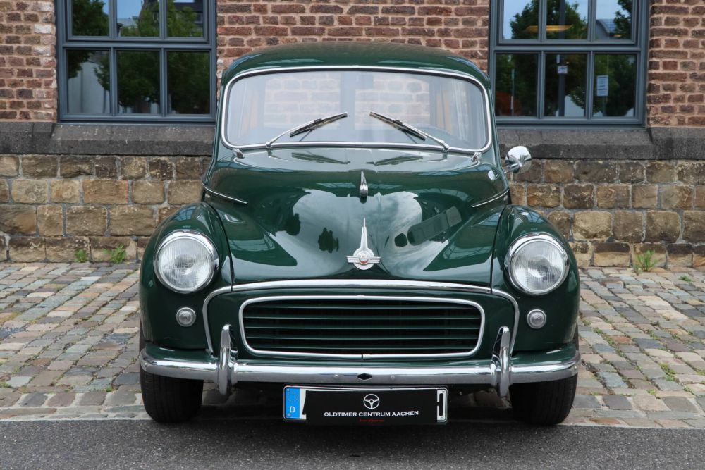 This delightful 1957 Morris Minor 1000 MK II is an extensively restored and very well maintained vehicle from the early years of Series III production. Its consistently dark green furnishings make it a special eye-catcher and piece of jewelry - not least because of its extravagant sky and other loving details.