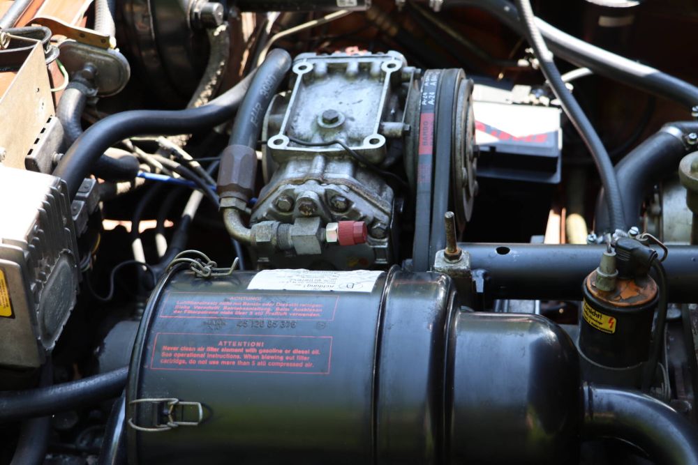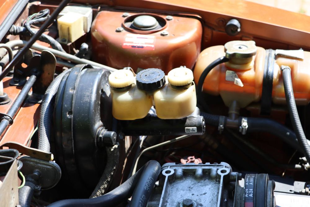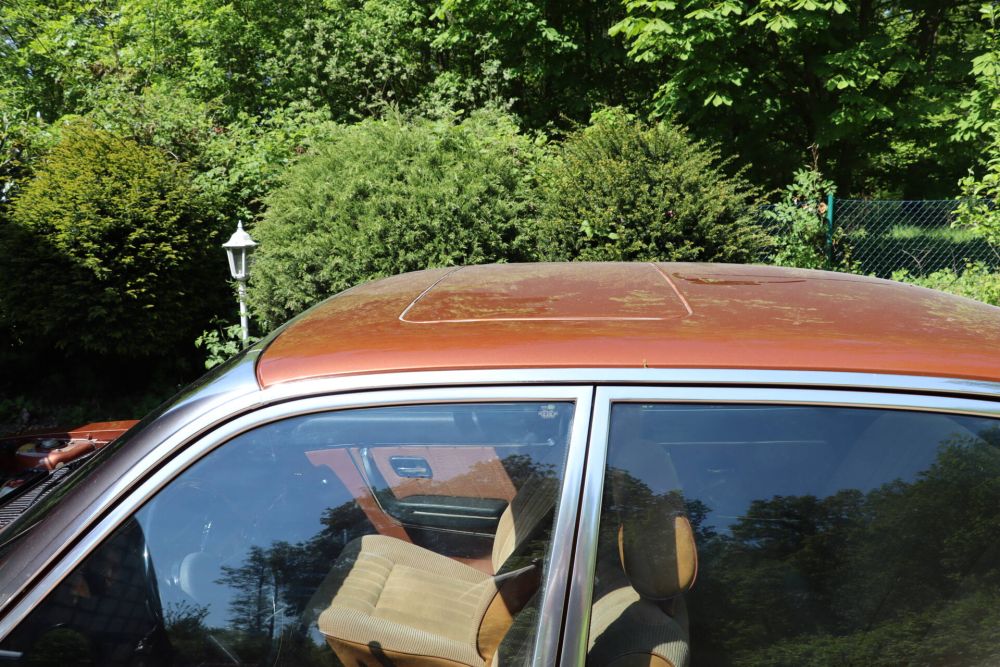 NSU ist mit dem Ro 80 einen Meilenstein der Automobilentwicklung präsentiert, der bei seiner Vorstellung im Herbst 1967 alle andere Automobile alt aussehen ließ. Sein Design war anderen Herstellern um Jahre voraus und wirkt auch heute noch frisch. Das Fahrwerk war damals sehr modern und der Motor sollte das Tor zu einer neuen Antriebswelt aufstoßen. Leider waren sowohl die Werkstätten als auch das Management letztendlich überfordert und der Plan ging nicht auf. Nach den ersten Problemen – hauptsächlich mit der Antriebstechnik – haben zahllose Ro 80 Zeugnis von der Dauerlauffähigkeit des Konzeptes abgelegt. Unser Wagen wurde im Sommer 1975 nach Spanien exportiert und dort von seinem ersten Besitzer bis Ende 1986 gefahren. Der zweite Besitzer ein Werkstattbesitzer hatte ihn bis Anfang 1991 und verkaufte ihn an einen Freund, der den NSU dann bis 2023 im Besitz hatte und ihn über 80 Jahre alt dann verkaufte. So gelang der Wagen zurück nach Deutschland. Die guten klimatischen Bedingungen haben dafür gesorgt, dass der Wagen nie geschweißt wurde und an den typischen Stellen ohne Rost ist. Im Motorraum und im Kofferraum ist noch der erste Lack in gutem Zustand zu bewundern. Aber auch Motorhaube und Kofferraumdeckel sehen aus wie neu. Der Außenlack wurde von uns im Originalton „Tizianmetallic“ erneuert, da eine ältere spanische Lackierung eine schlechte Qualität hatte. Der NSU ist mit einem elektrischen Stahlschiebedach ausgestattet. Außerdem wurde in Spanien eine Klimaanlage nachgerüstet. Der Innenraum befindet sich insgesamt in einem sehr schönen Zustand. Der Motor springt gut an und läuft sehr schön. Eine Edelstahlauspuffanlage wurde noch in Spanien für das Auto angefertigt.
