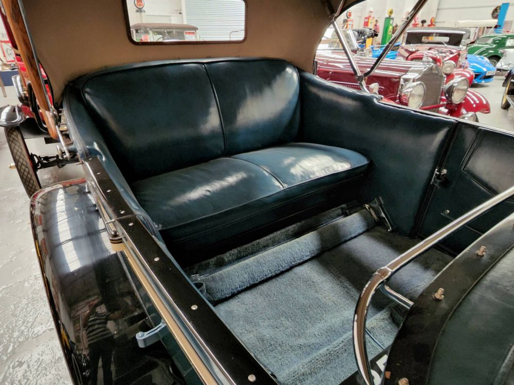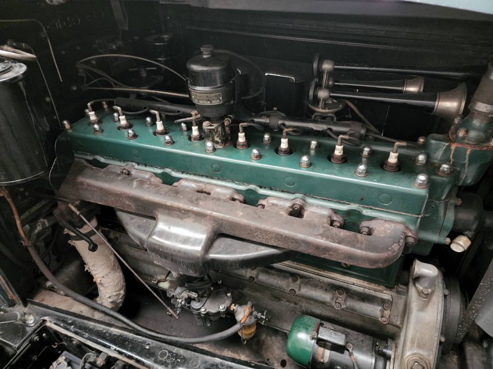 A delightful 1929 Packard 640 Touring Deluxe, finished in blue over black, with cream detailing. Introduced in 1928, the Custom Eight sported round-back headlamps, a dash mounted temperature gauge and larger capacity straight eight side-valve engines. An L head design, this revised powerplant developed some 109HP and was mated to a 3-speed manual gearbox. Built around a and larger 145” wheelbase, the Custom Eight’s leaf-sprung, ladder frame chassis featured all round drum brakes. Furthermore, a six-gallon capacity radiator and a Bijur lubrication system. The car carries twin Bosch horns, twin Packard safety “Trippe Speedlight” auxiliary lamps, twin scuttle lights and a windscreen pillar mounted CM Hall spotlight. The interior has blue leather upholstery and is complemented by matching carpets. The wood effect dashboard has a full complement of instruments and is offset by an onyx gear knob and horn push. Under the bonnet, the single Carter updraught carburettor is joined by an Autovac, Bijur lubrication reservoir, ceramic finish manifold, auxiliary Spartan Horns and a North East Company distributor. The wire wheels are shod with7. 00 x 20 white wall tyres. The front and rear bumpers boast fluted edges. This 1929 Packard 640 Touring was first sold in Brooklyn, NY to a Mrs Winnie Richards. Accessories added to the purchase invoice to enhance the car were 2 spare tyres on wire wheels, a deluxe emblem, Onyx ball and Button, step plates, trunk and cover, 2 tyre mirrors, giant bumpers and a bugle horn.