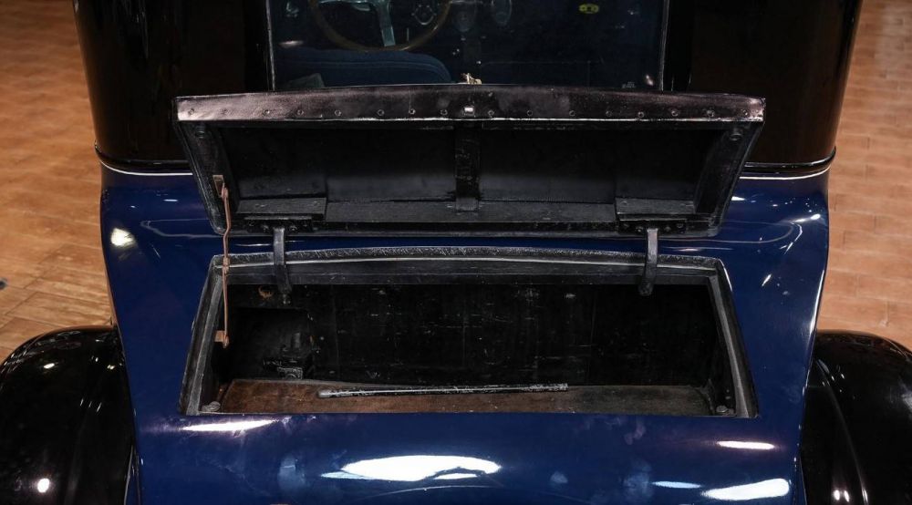 A stunning 1923 Packard 'Doctor's' Coupe 126 in dark blue with an upper black roofline and contrasting black fenders. This car was perfectly suited for doctors to make house calls and the rear seat contains a special compartment to store the doctor's medicines and bag. The passenger front seat folds out of the way to make the rear seating more accessible for medical transportation of patients. At the time it was an economical car in the six-cylinder line that sold for $3,550. Packard script plates are located on the running boards and a Motometer tracks the engine's temperature. It features jewelled crown headlamps and a fuel gauge mounted directly to the gas tank. Furthermore there are interior flower vases, sun visor and self-contained trunk area. The interior is finished in pleated blue wool broadcloth with matching blue headliner. Up front, the doctor had his own seat behind a large wood steering wheel. The coupe has also been retrofitted with turn signals in the interest of safety. Power comes from a 268.4-cubic-inch L-head straight six rated at 54 HP. It rides on colour-keyed wood spoke artillery wheels with pinstripes and Blackwall tyres for a period-correct look. This 1923 Packard 'Doctor's Coupe 126 is a smart-looking car from any angle. Its clean lines project the imagine of Packard's fine engineering.